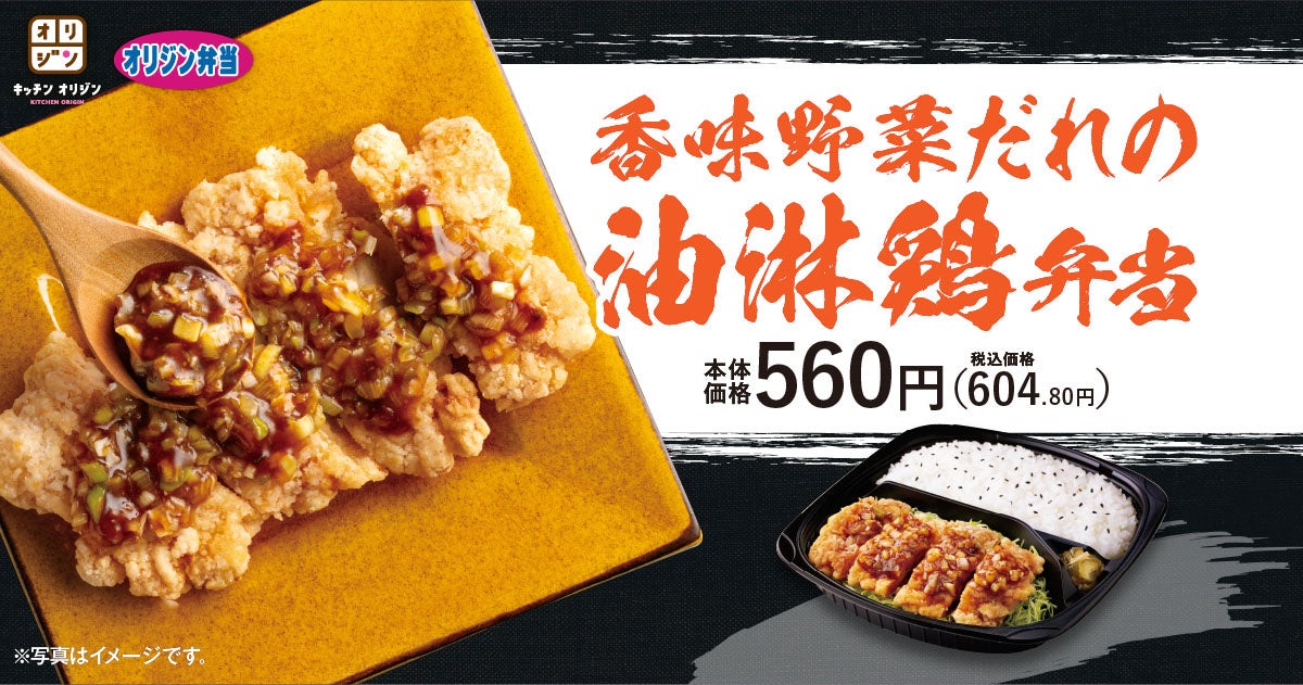 弁当・惣菜専門店「キッチンオリジン」「オリジン弁当」を展開しているイオングループのオリジン東秀株式会社(本社:東京都調布市/代表:沢村 弘也)は、10月12日(水)10時より、「香味野菜だれの油淋鶏弁当」を販売いたします。