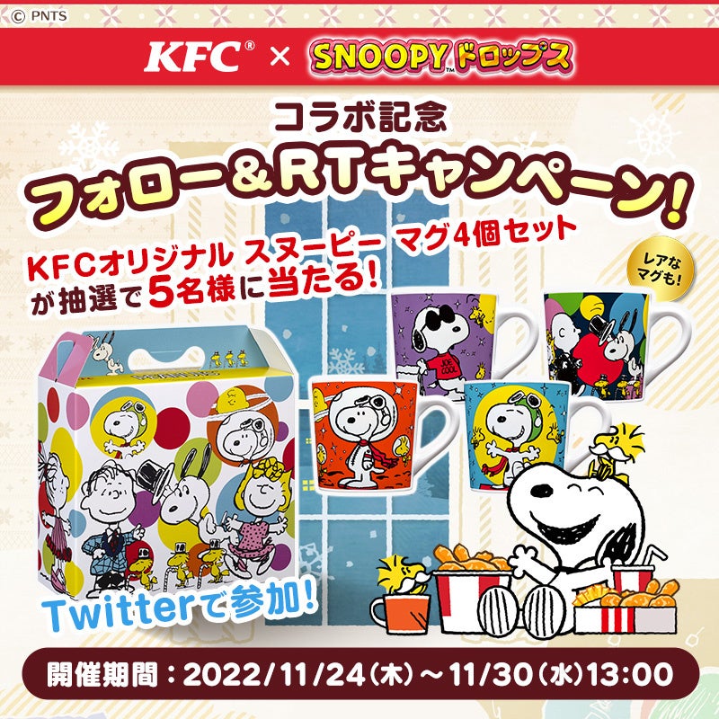 『スヌーピー ドロップス』と『KFC』、二つの公式Twitterアカウントをフォローして参加してね!