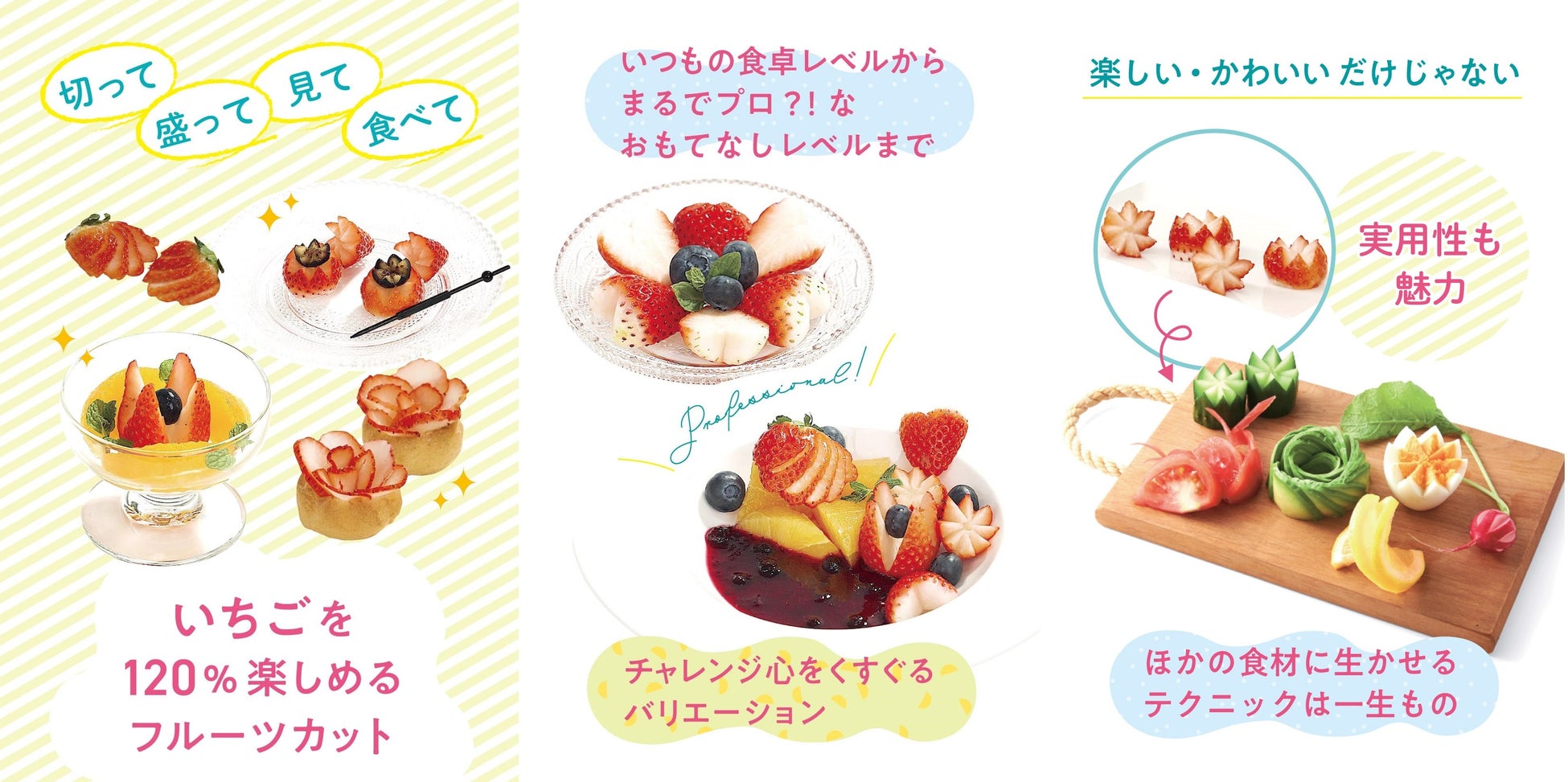 真っ赤で小さくて、そのままでもかわいいいちごを、フルーツカットで素敵に華やかにアレンジする動画レッスンです。フルーツカットするのがむずかしいといわれるいちごも、動画レッスンで先生直伝のコツをつかめば、美しく仕上げることができます。すぐに食卓に出せる簡単アレンジから、まるでプロの技のようなデザートプレートまで、挑戦してみたくなるカットや盛り付けが満載です。