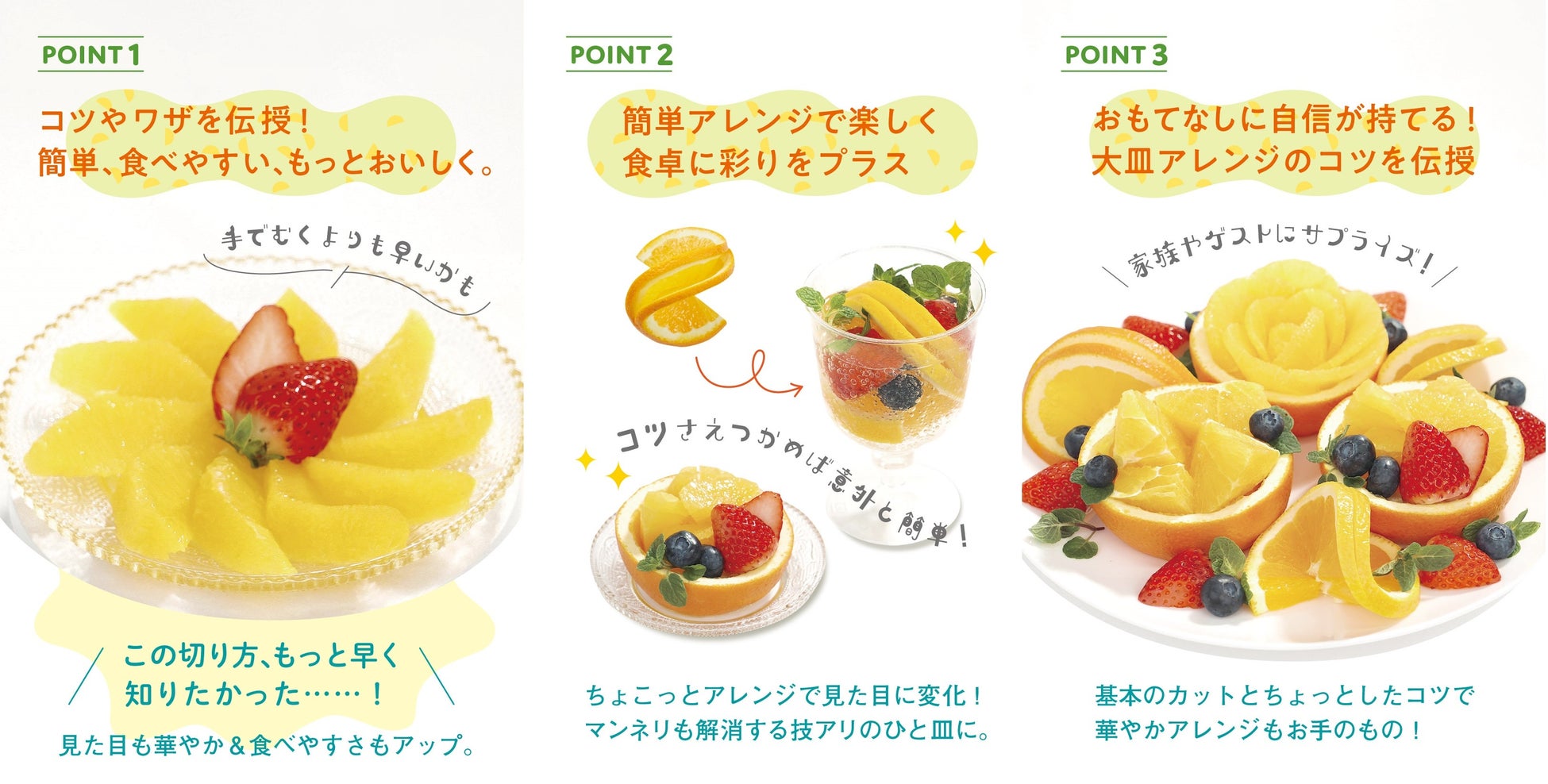 ナイフの扱い方や基本的なカットを動画でわかりやすくレクチャーしてくれます。ベーシックでは年間を通して手に入りやすいオレンジをメインに使っています。