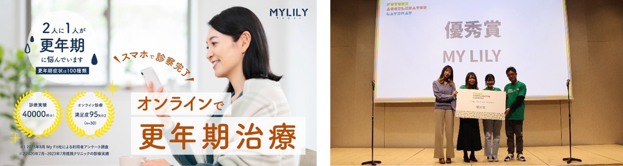 MyFitは、代表の山田氏が高校生の時にお母さまを亡くされたという原体験から「個人に合わせたヘルスケアで、健康寿命の延伸に貢献する」というビジョンを掲げ、大学在学中の2021年に立ち上げたスタートアップ企業です。更年期における健康課題を解決すべくスタートしたサービス「MYLILY」を展開しており、お客さまは、医師の診療、処方、薬の受け取りまでをスマホで完結させることができます。