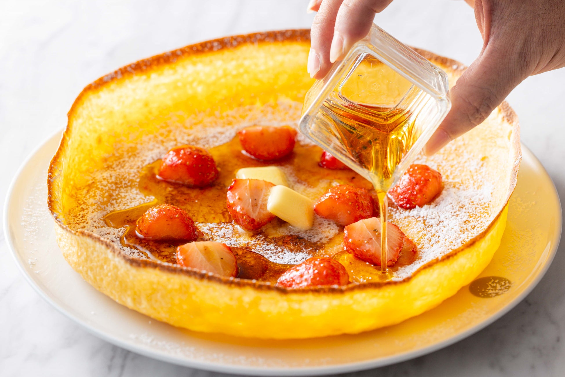 ジャーマンストロベリーパンケーキ メープルシロップ、バターとともに