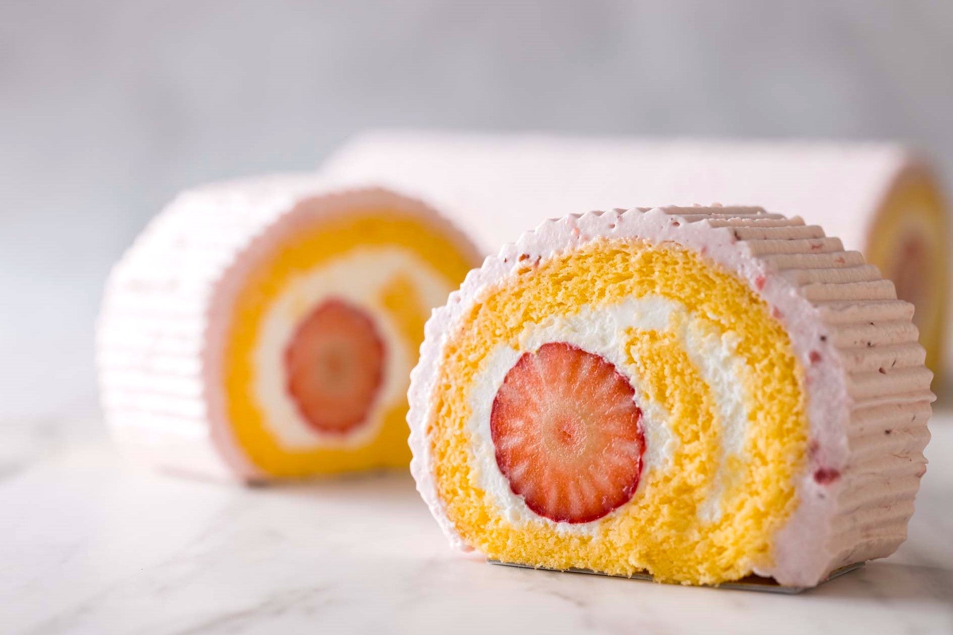 たっぷりの苺を米粉の生地で包み、苺の果肉が入った上品な甘さの生クリームでコーティングしました。ミルキーな甘味とほどよい苺の酸味が軽やかなロールケーキです。