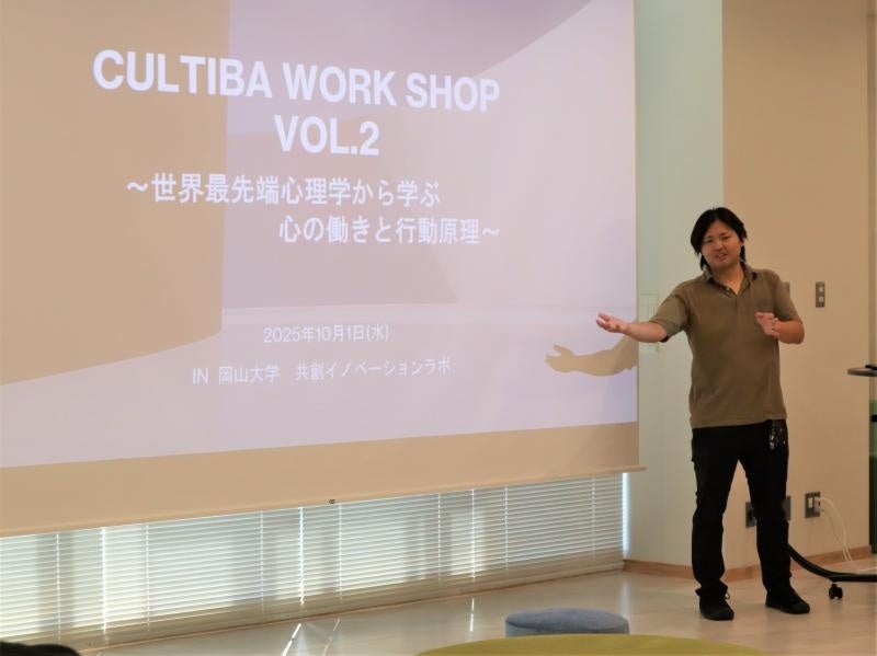 国立大学法人岡山大学(本部:岡山市北区、学長:那須保友)は2025年10月1日、本学津島キャンパスの共創イノベーションラボ(KIBINOVE:きびのべ)※にて、「人はなぜどのように行動するのか?!人のやる気はどこから湧くのか?!」をテーマとしたワークショップを開催し、本学の学部生・大学院生を中心に約30人が参加しました。
