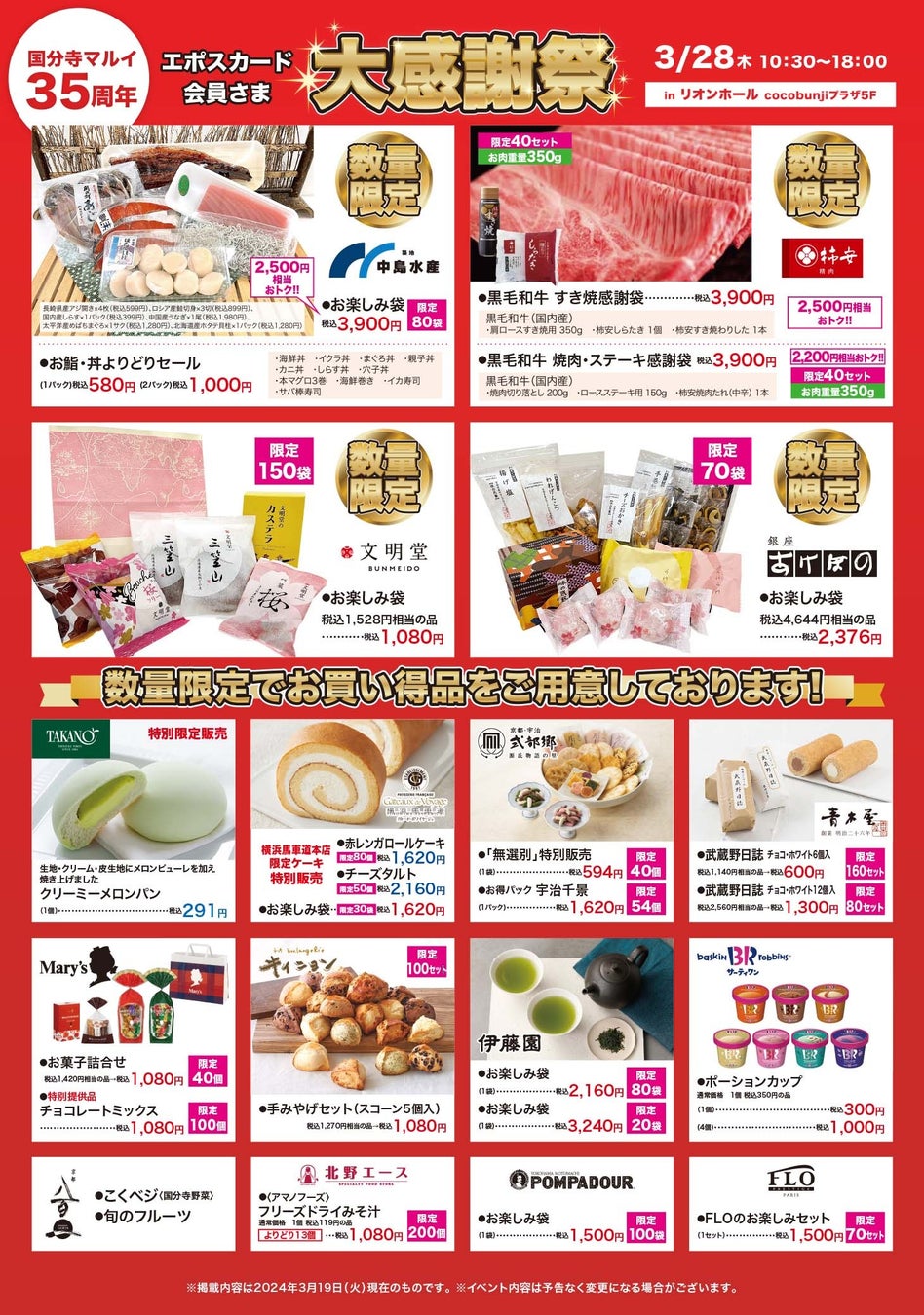 おかげさまで国分寺マルイは、2024年3月1日(金)に、開店35周年を迎えることができました。