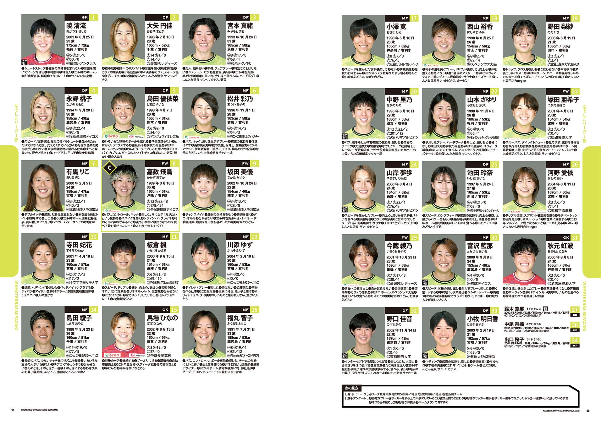 毎年好評を博している「なでしこリーグ」の2025シーズンのオフィシャルガイドブック。1部と2部の計24チームの登録選手のプロフィールはもちろん、選手へのアンケートも収録しています。