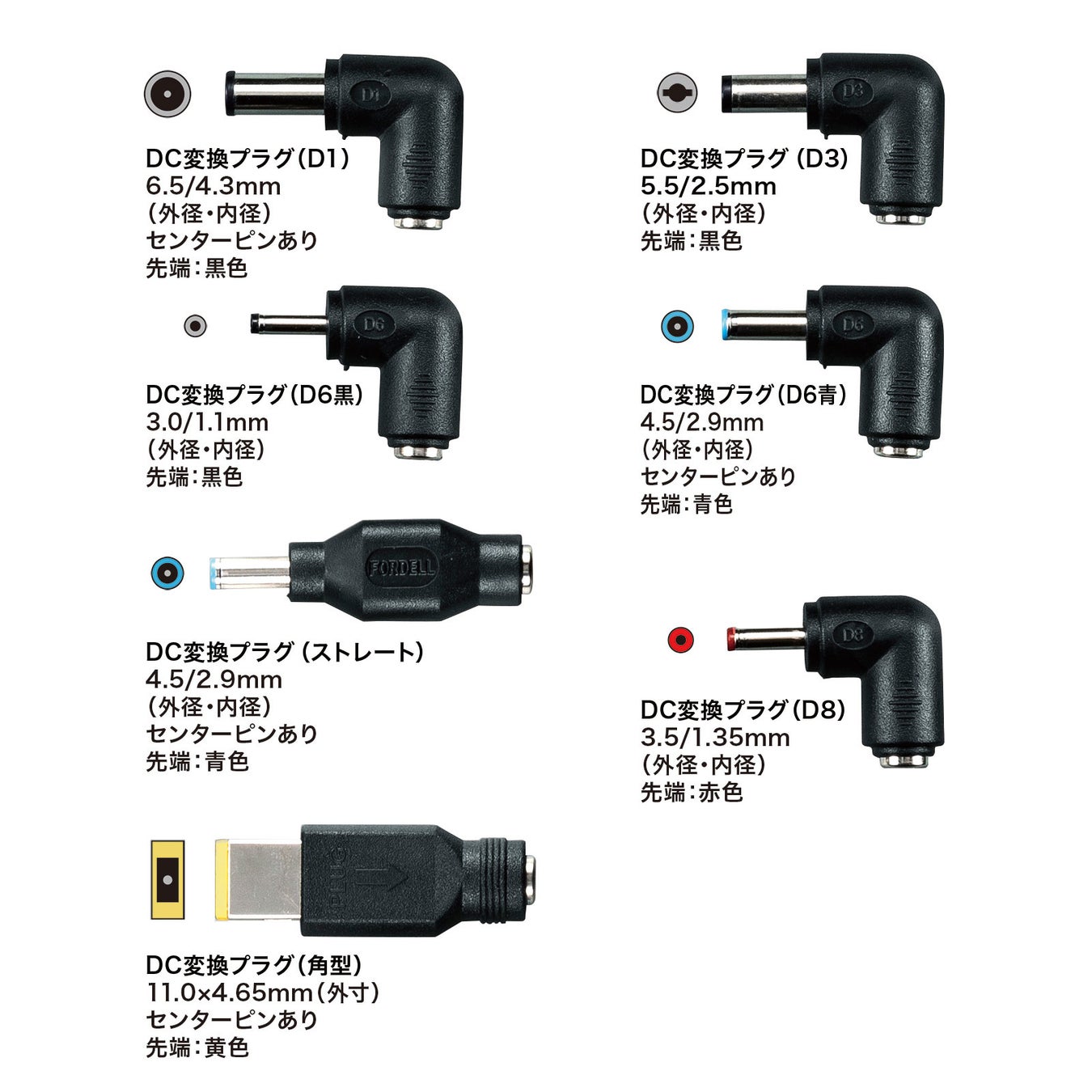 65W出力に対応し7種類の変換プラグが付属したノートパソコン用マルチACアダプタ