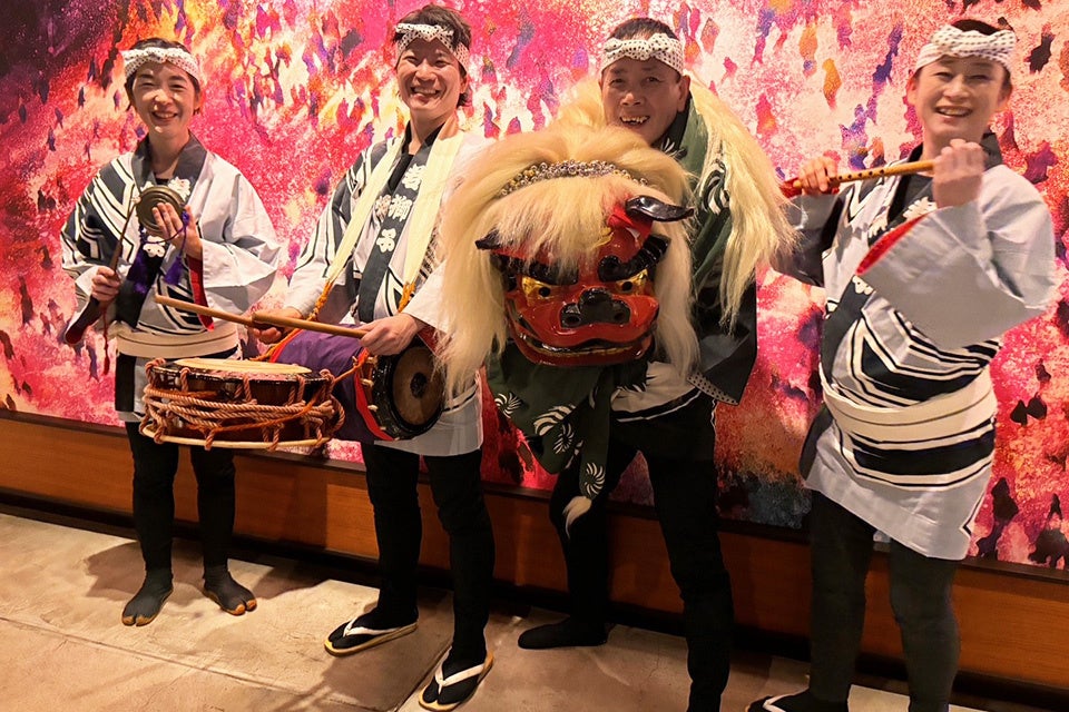ホテル館内のロビーからダイニングエリアにかけて、新しい年の幸福と無病息災を願い、お獅子が練り歩きます。SHIBUYA STREAM HOTELのモダンな空間で繰り広げる伝統芸能の獅子舞をお楽しみください。