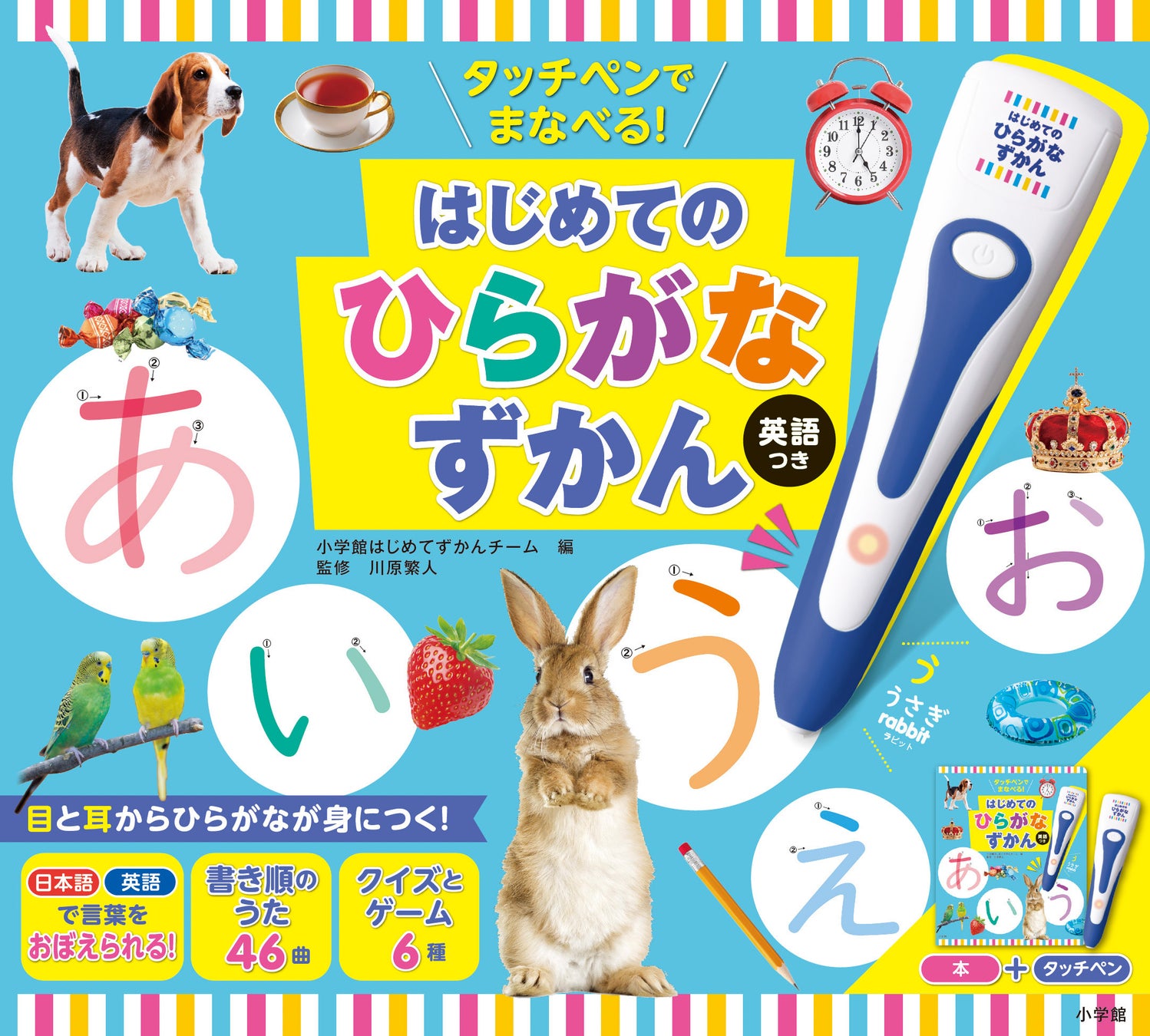 100万部突破の大ヒット!マルチメディア・児童・学習部門ベストセラー1位(※)の『タッチペンで音が聞ける!はじめてずかん1000 英語つき』をはじめとする「小学館のタッチペン」シリーズから、楽しく遊びながらひらがなが身につく『タッチペンでまなべる!はじめてのひらがなずかん 英語つき』が発売されました。