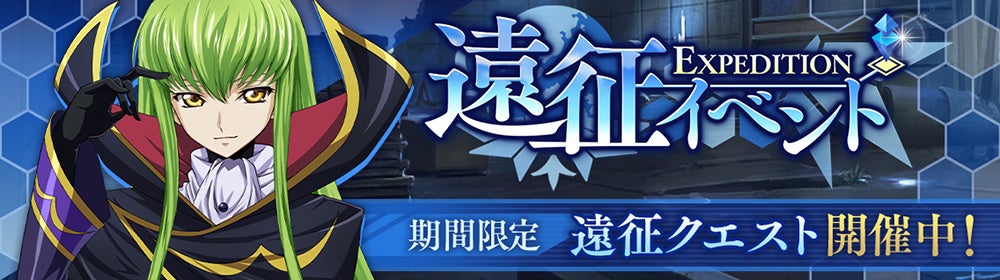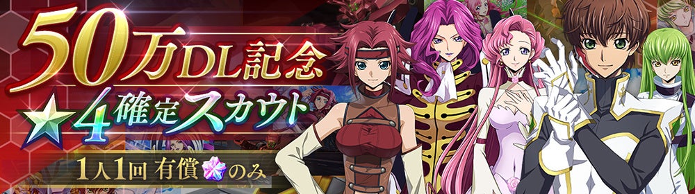 これを記念して★4パイロットが確定で登場する「50万DL記念★4確定スカウト」を開催します!また本日より★4 C.C.[共犯者]が手に入る「C.C.[共犯者] ピックアップスカウト」開催、さらに遠征クエストイベントを開催します!