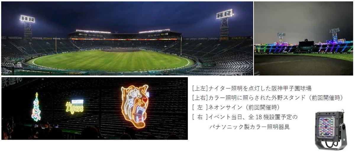 ナイター照明の明滅が連動するシーズン中の演出のほか、カラー照明を用いた外野スタンドを照らす演出、ネオンサインも前回より数を増やして実施予定です。