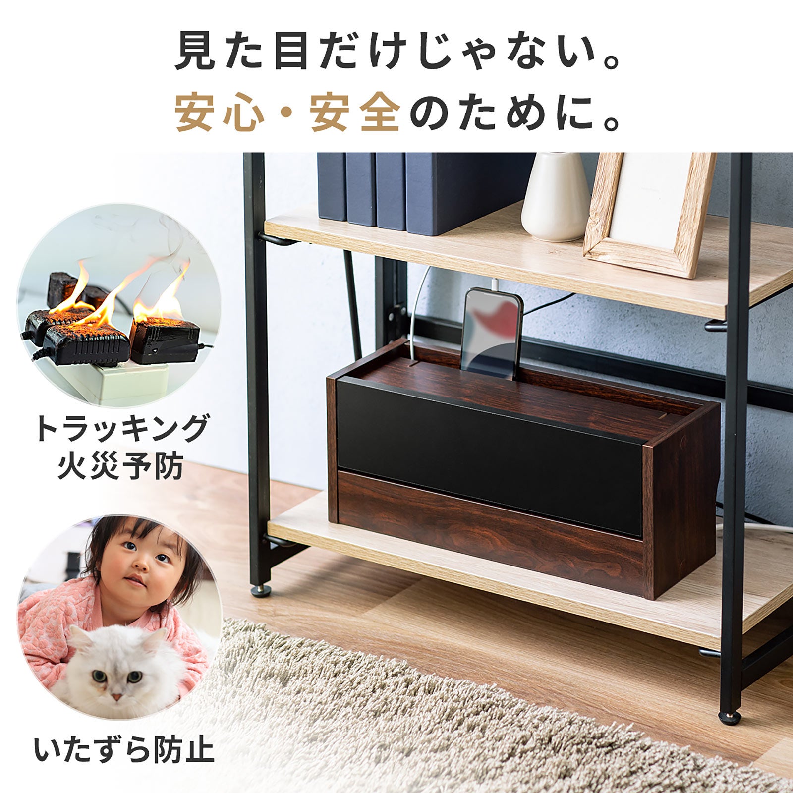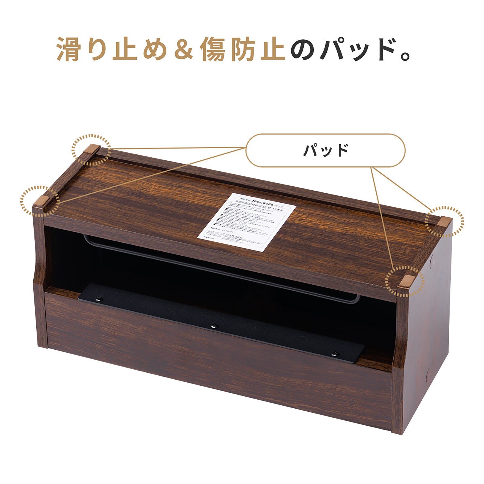 本製品は、ケーブルや電源タップなどが綺麗に収納できる木製の収納ボックスです。ごちゃごちゃしがちなケーブルをキレイにし見た目もスッキリさせることができます。