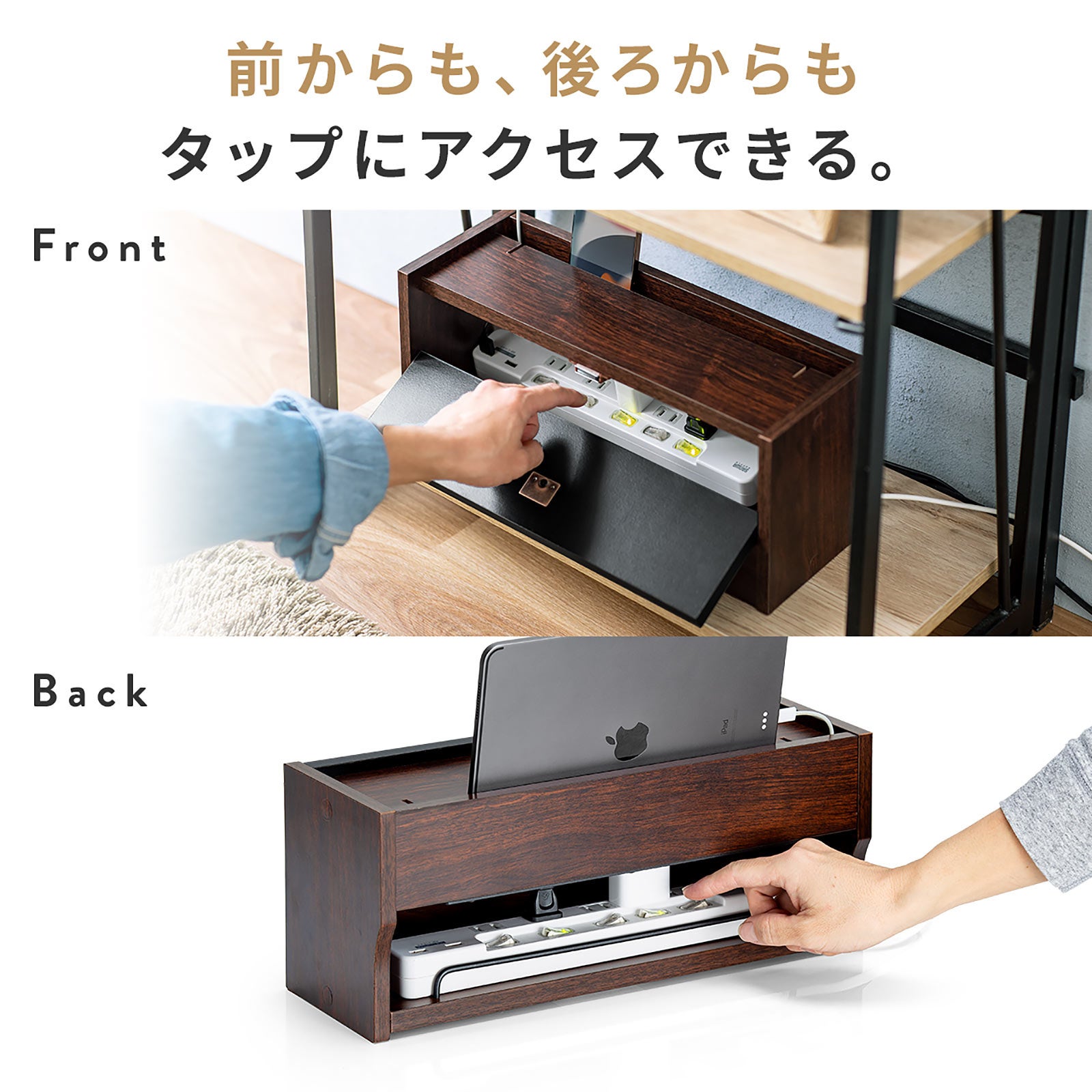 ケーブルボックス タップボックス 木製 小型 ケーブル収納 タップ収納 スマホスタンド