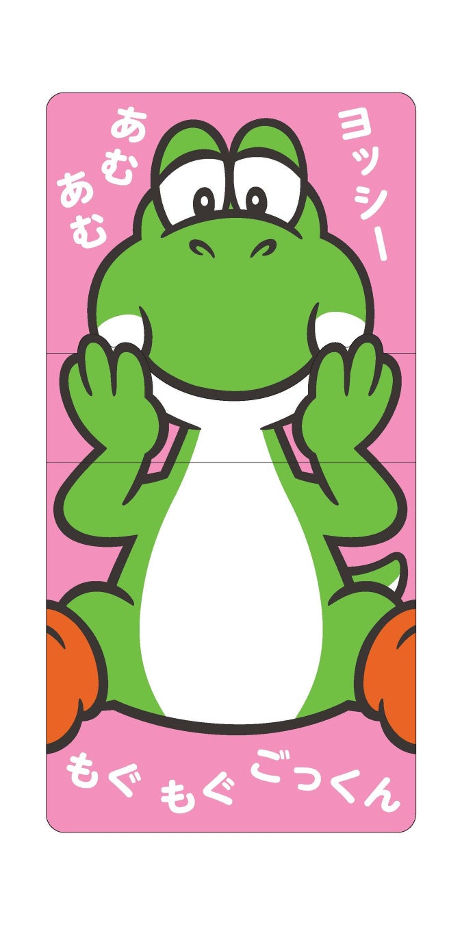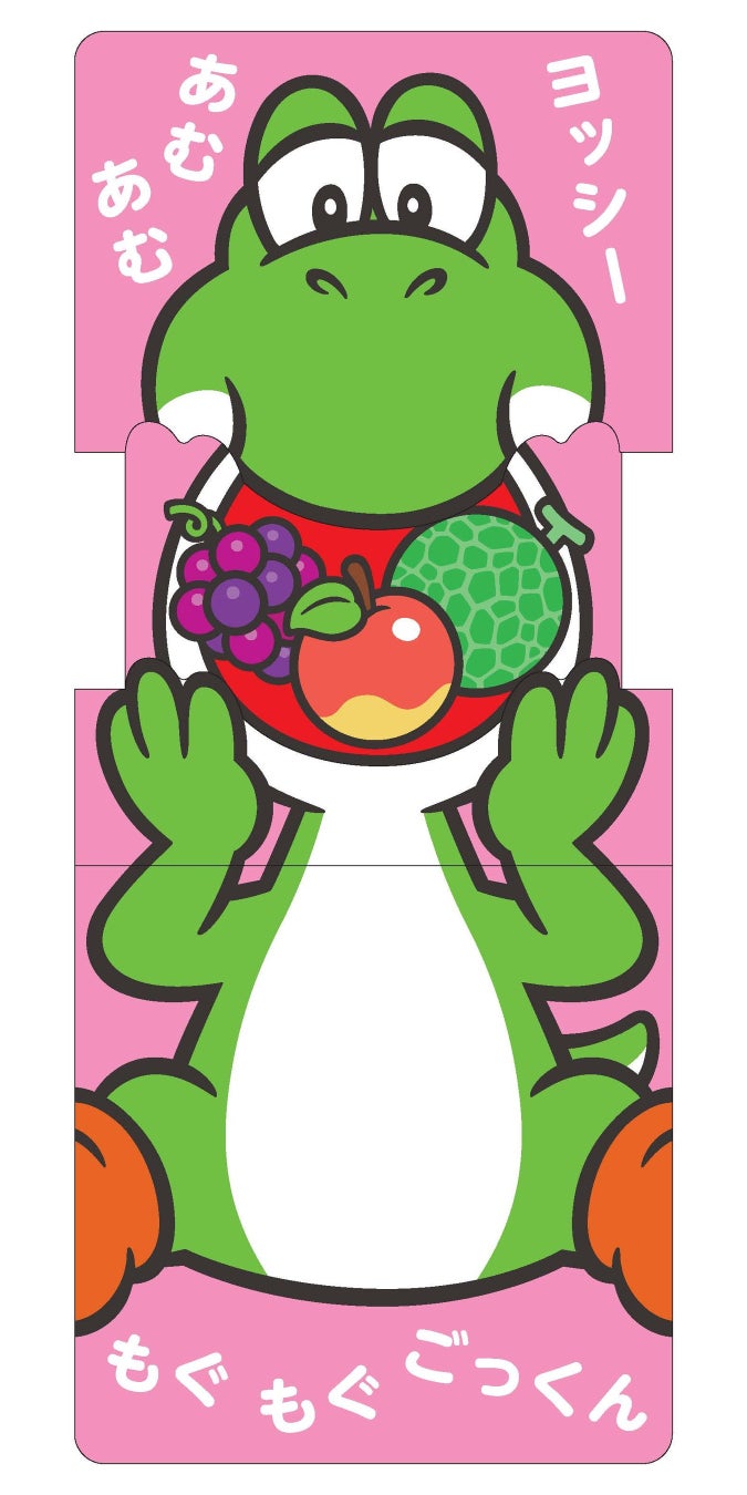 舌を引っ張ると……ぺろーん! マリオの「かお」が動かせる絵本『かおマリオ』に続き、小さなお子さまがさわって・うごかして・発見できる、新しいしかけ絵本『ぺろぺろヨッシー』が小学館より発売されました。