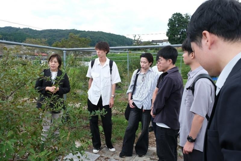 その後、一行はマイクロバスで移動し、シバムラグループが運営する「道の駅かよう」やブルーベリー農園・加工所などを見学。学生たちは「シバムラグループが町全体を支えているかけがえのない存在であることがよくわかった」と話し、中には「ブルーベリージュースの加工工程を初めて見た。搾りかすを利用した商品は環境負荷が低そうなので算定してみたい」との声もあり、意識の高まりがうかがえました。