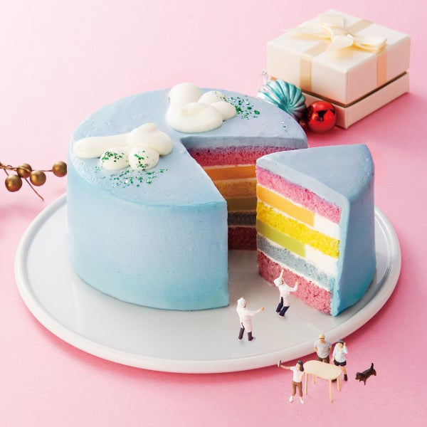 このほか、水色のクリームと虹色の断面が目を引く一風変わったケーキや「すみっコぐらし」のキャラクターケーキなど、自宅で楽しむクリスマスメニューのトータルコーディネートを提案します。