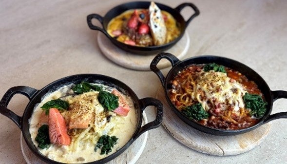 そのほかにも、鉄鍋で提供するあつあつパスタや、冬にぴったりのあったかデザート、香り豊かな新作ホットドリンクなど、冷え込む季節にうれしいメニューを取り揃えました。さらに、ディナータイムにはシェフのフランベのパフォーマンスが楽しめる特別ディナーのほか、木・金曜日限定で暖炉のそばでくつろげる「暖炉カフェ」も開催いたします。