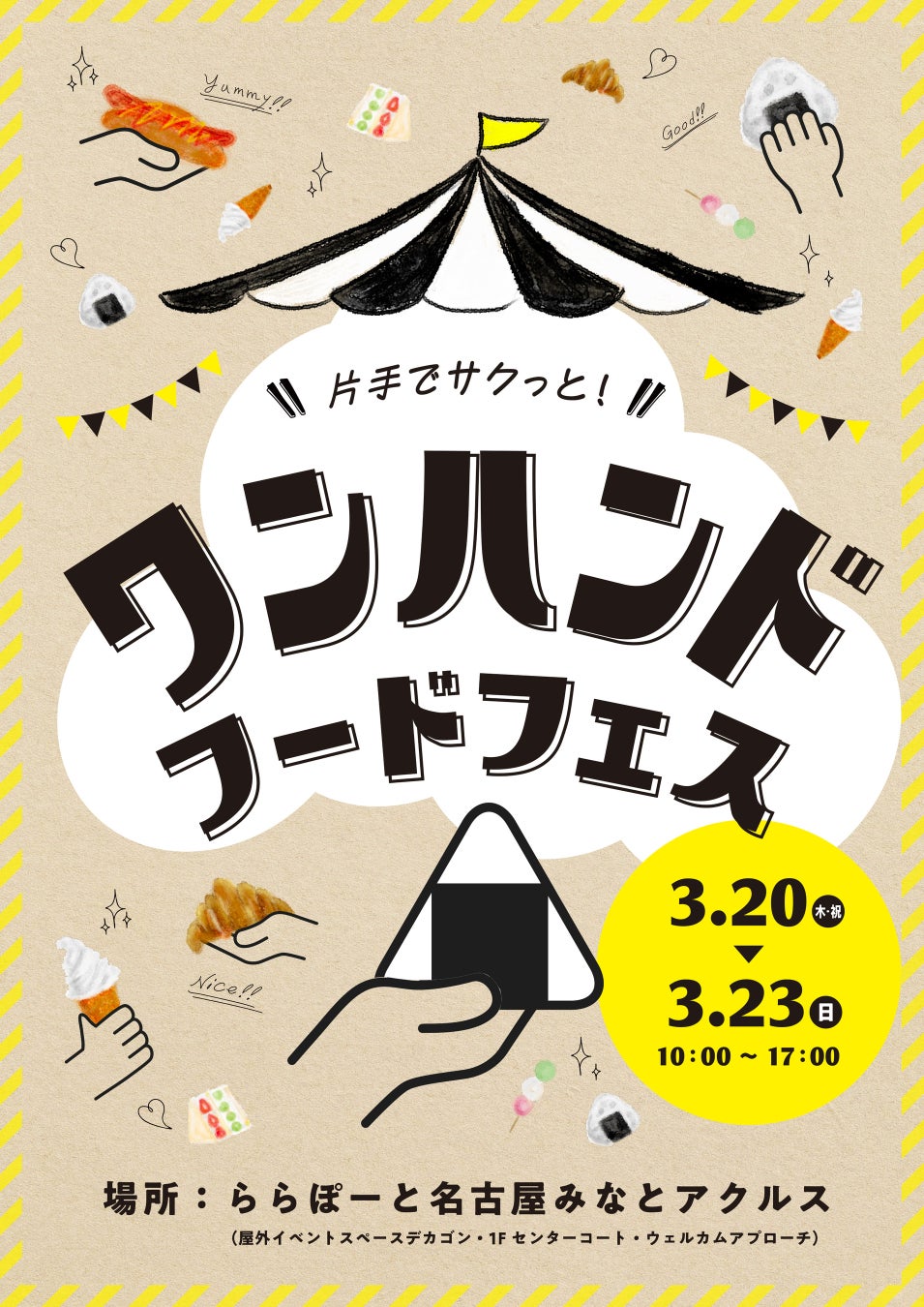 『ワンハンドフードフェス』3月20日(木・祝)から3月23日(日)三井ショッピングパーク ららぽーと名古屋みなとアクルスで開催。
