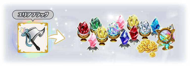 獲得した「エリアフラッグ」はイベント限定ショップにて「感情の欠片」「レインボーオーブ」等と交換できます。