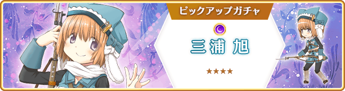 『三浦旭 ピックアップガチャ』では、下記ピックアップ対象の魔法少女およびメモリアの提供割合がアップしております。