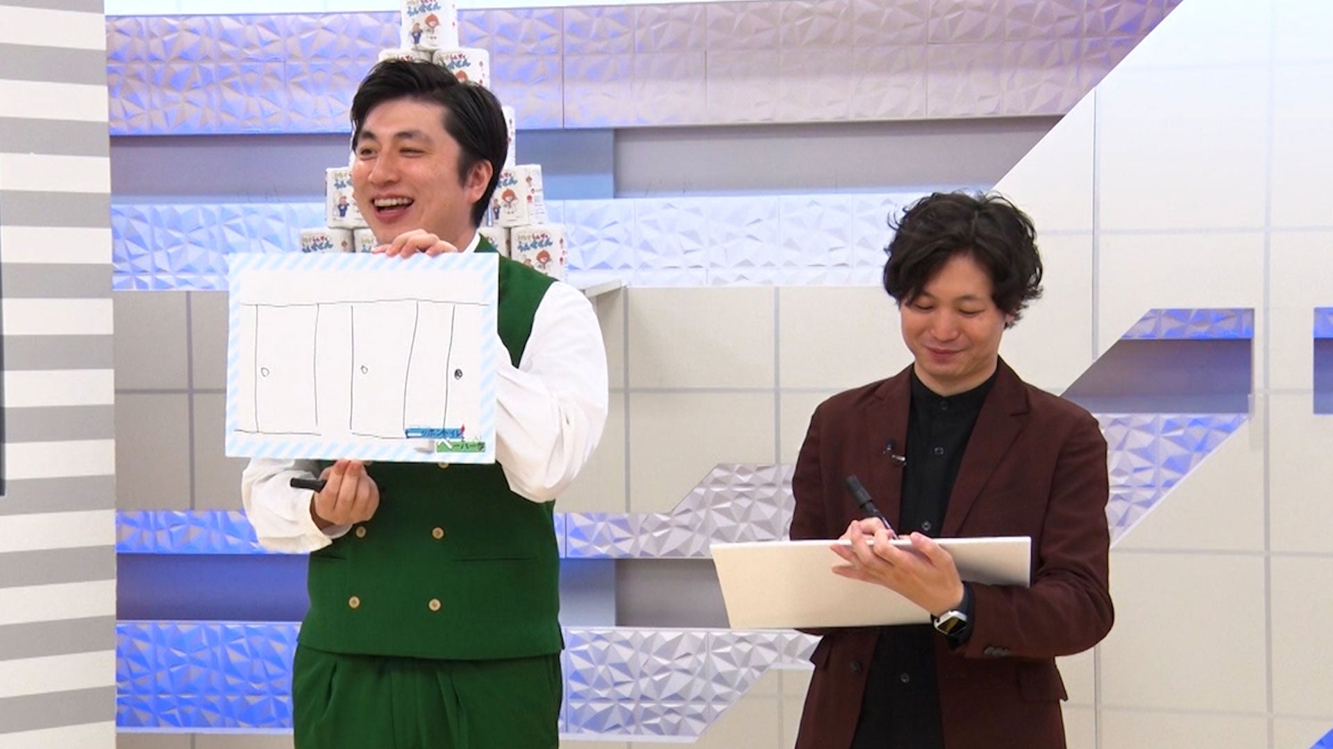 まず紹介されたのが、映画『PERFECT DAYS』でも取り上げられ、世界的な話題となった渋谷区の公共トイレ「THE TOKYO TOILET」プロジェクト。読み方について天の声(スパイク・松浦)がボケるという展開に、小林は「え!そっち側がボケんの(笑)?」と戸惑いの様子も見せつつも、半透明トイレや吉野杉を使ったトイレなど公共トイレとは思えないオシャレすぎるトイレの数々に、ランパンプス2人も驚きの表情を浮かべます。