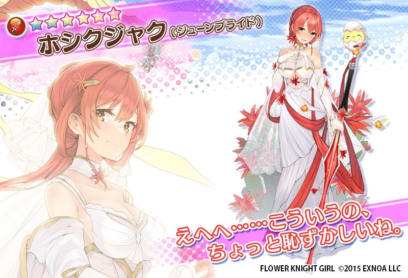 「ヒツジグサ(ジューンブライド)」「キルタンサス(ジューンブライド)」「ホシクジャク(ジューンブライド)」「リンゴ(ジューンブライド)」のキャラクエストがボイス付きで追加!
