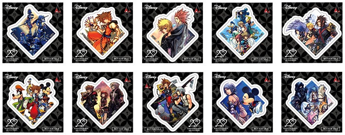 開催内容:期間中、「キングダム ハーツ」関連のキャラクターグッズをご購入・ご予約内金2,200円(税込)毎に、特典「ステッカー(全10種)」をランダムで1枚プレゼントいたします。