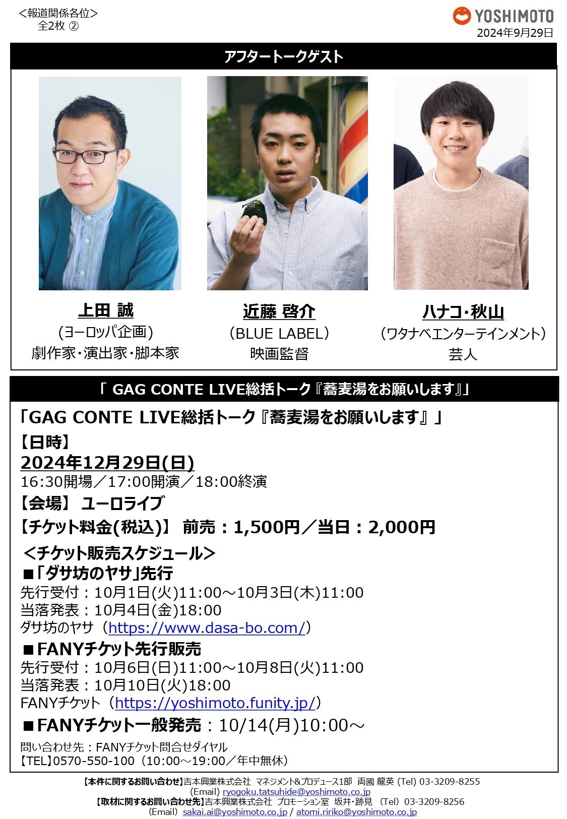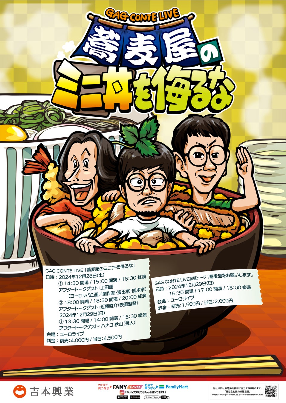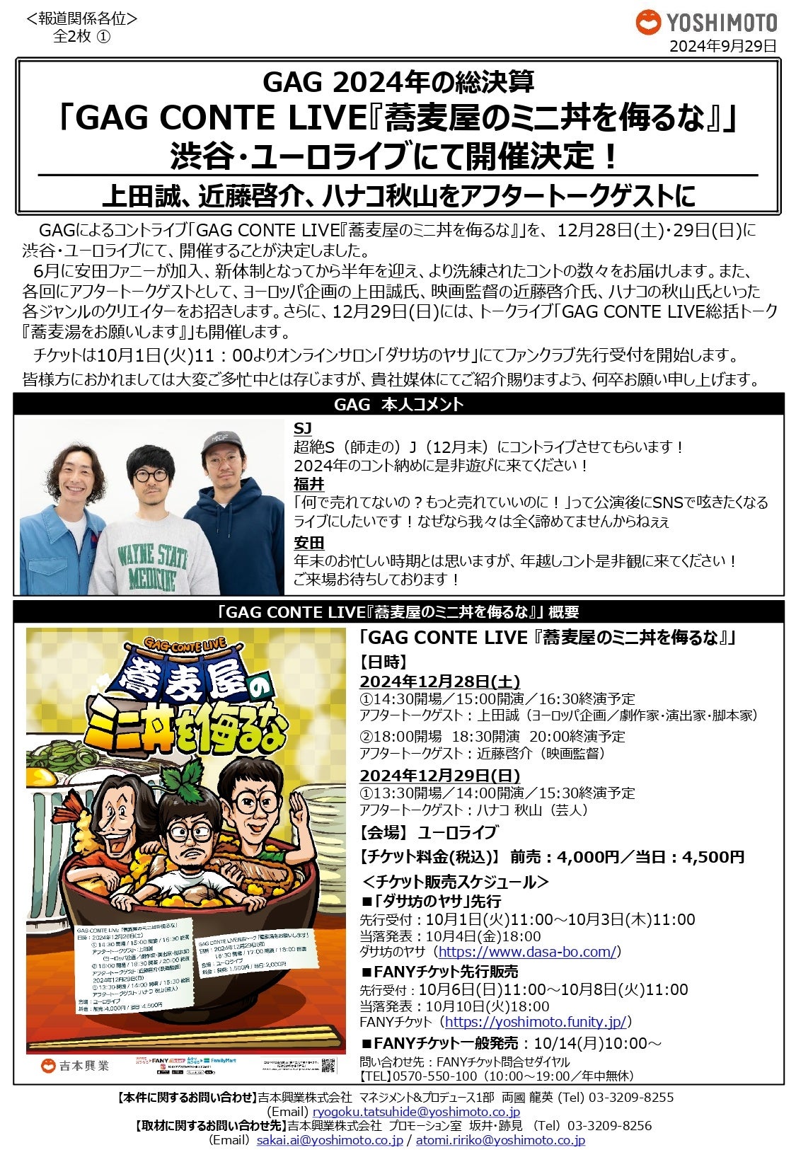 GAG 2024年の総決算!「GAG CONTE LIVE『蕎麦屋のミニ丼を侮るな』」渋谷・ユーロライブにて開催決定!上田誠、近藤啓介、ハナコ秋山をアフタートークゲストに