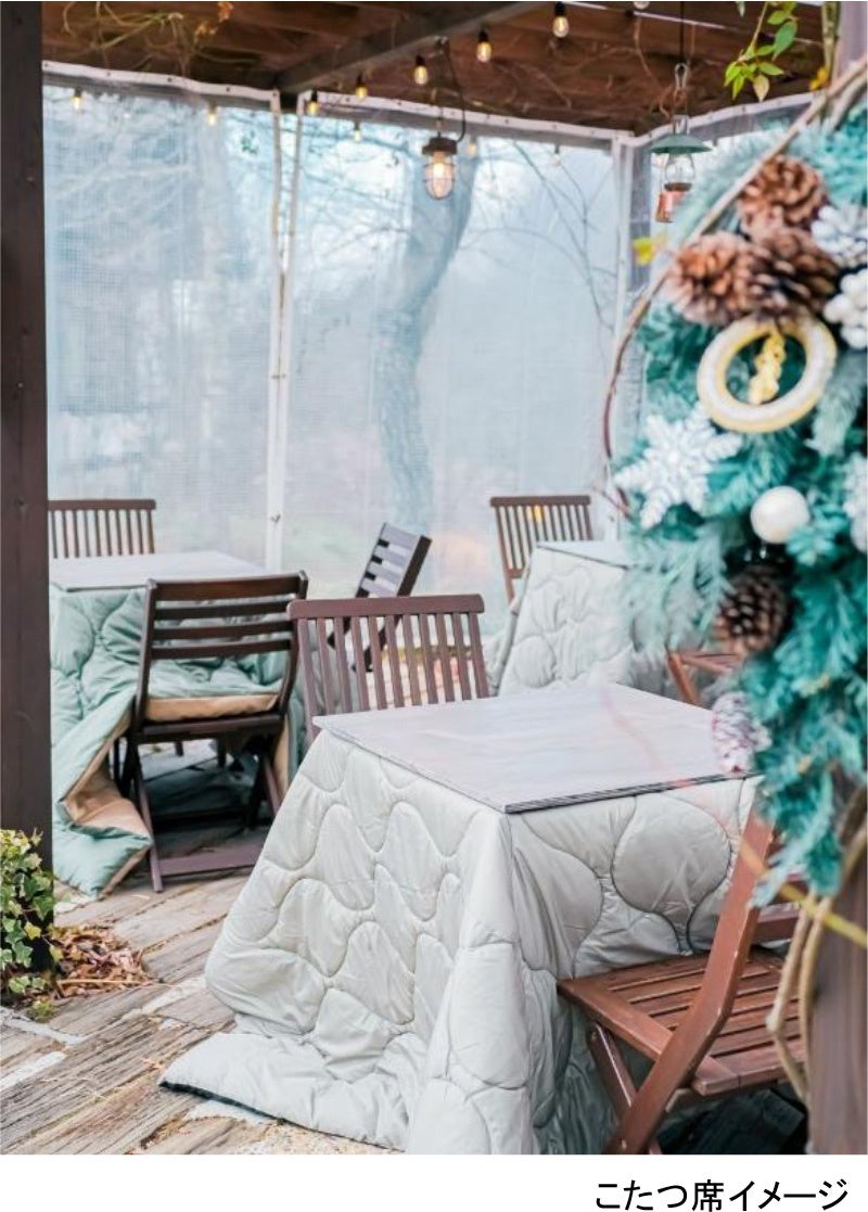 テラスに設置のこたつ席で冬景色を眺めながら楽しむのもお勧めです。