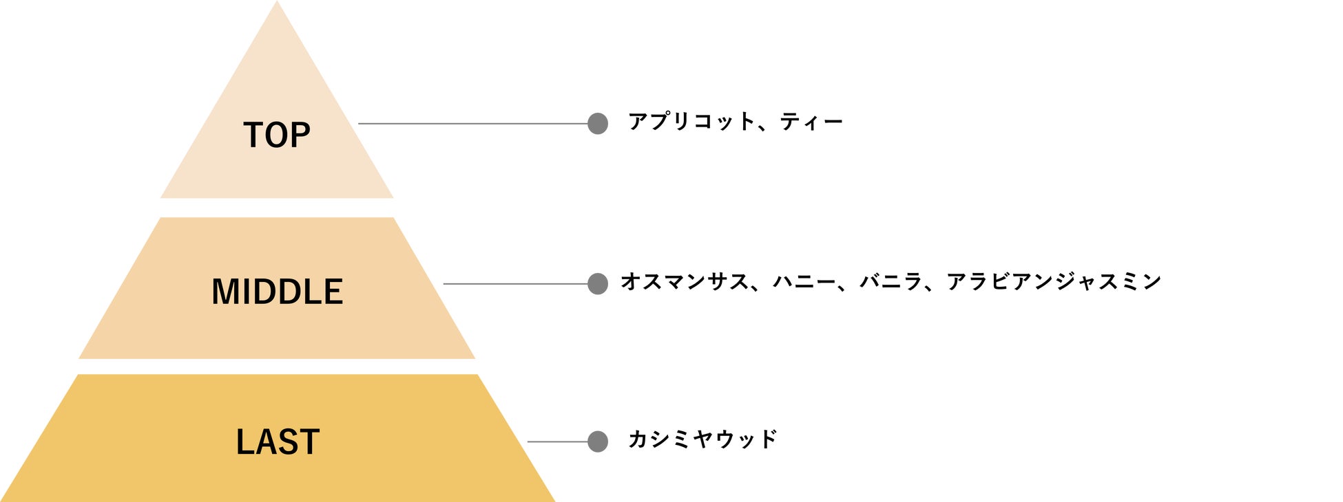 すっきりとしつつ丸みのあるティーノートをトップに効かせた、青々しさも感じられる洗練された香りです。オスマンサスの花の甘さはキープしながら、ウッディノートやグリーンノートも加え、しつこさのない上品な甘さに仕上げました。