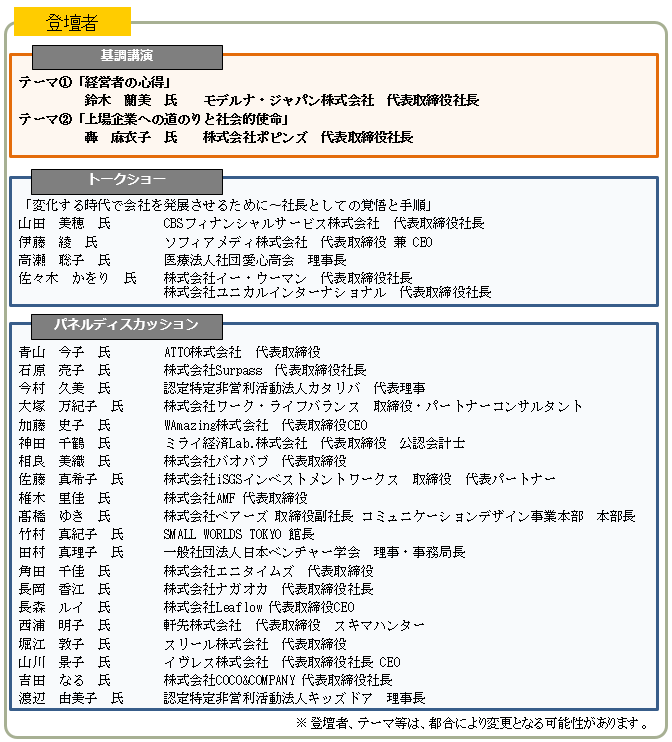 また、本日より、イベントの一般参加者及び東京女性経営者アワードの募集を行います。