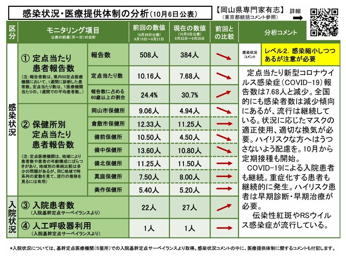 ・岡山県内の感染状況・医療提供体制の分析について(2025年9月29日現在)
