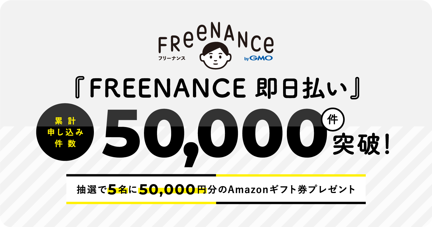 ▽キャンペーン名:『FREENANCE 即日払い』累計申し込み件数50,000件突破キャンペーン