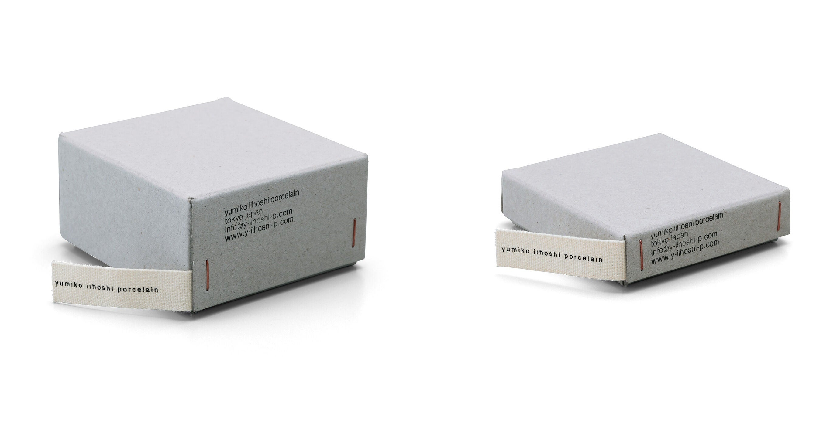 いずれもユミコ イイホシ ポーセリンのオリジナル箱に入れてお届け。そのままプレゼントにも最適です。リボンがあしらわれた箱はついとっておきたくなるかわいさです。