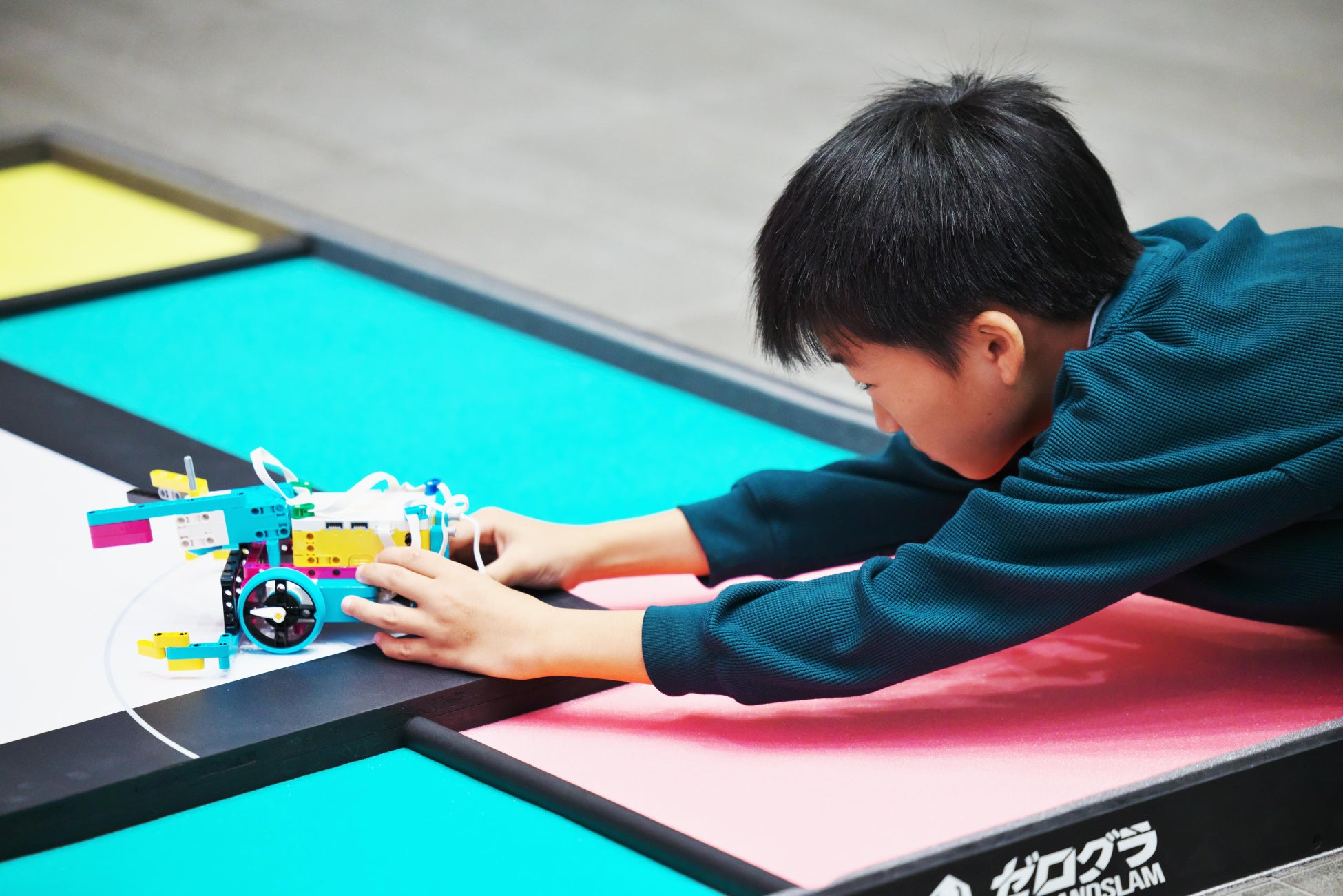 「ロボット競技」は、選手が組み上げたロボットで、フィールド上にあるターゲットをより高いポイントのエリアに落とすという競技。「アーテックロボ」「KOOV」「SPIKEプライム」の3種から選手が好きなロボットを選べる、いわばロボットの異種格闘技戦であることも、ゼログラの特徴のひとつです。それぞれのロボットの特性を活かした機体設計や戦略が、勝敗を分ける鍵となりました。