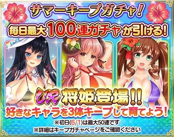 合同会社EXNOA(本社:東京都港区、CEO:村中 悠介、URL: https://games.dmm.com/)は、戦国乱世で410名以上の可愛い将姫(しょうき)達と契りを繰り広げながら天下統一を目指している龍人様が全国で230万人を超えた全年齢向け萌える戦国ゲーム『戦乱プリンセス』(以下、"戦プリ"(せんぷり))のスマートフォンおよびPCゲームサービス(https://games.dmm.com/detail/senran/)にて、6/1(水)より『サマーキャンペーン』を開催したことをお知らせいたします。