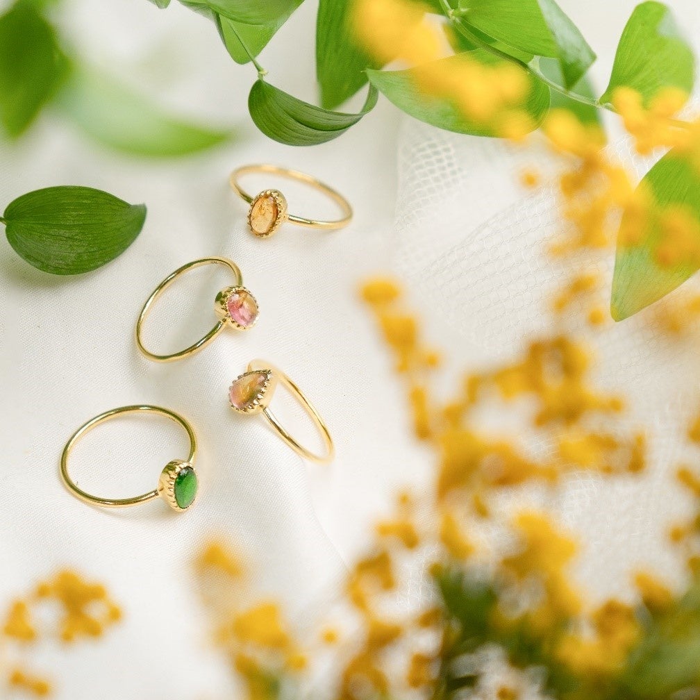 10月の誕生石であり、スリランカのシンハラ語の「turmali(トルマリ)=いろいろな色を持つ」を由来に持つトルマリン。さらに、宝石の中では珍しく、1つの石に複数のカラーを持ち合わせたトルマリンもご用意しております。ぜひお気に入りのリングを見つけてください。