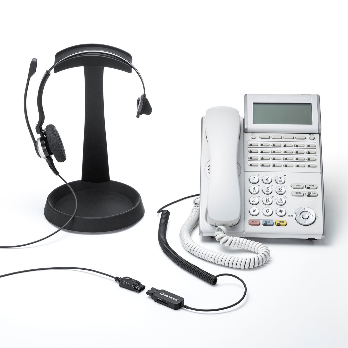 電話機と受話器との接続に使われているRJ-9端子が付いており、ヘッドセットとRJコネクタケーブルを接続して、受話器を取り外した電話機に接続します。着信があった際は、受話器を持ち上げることで受話できます。