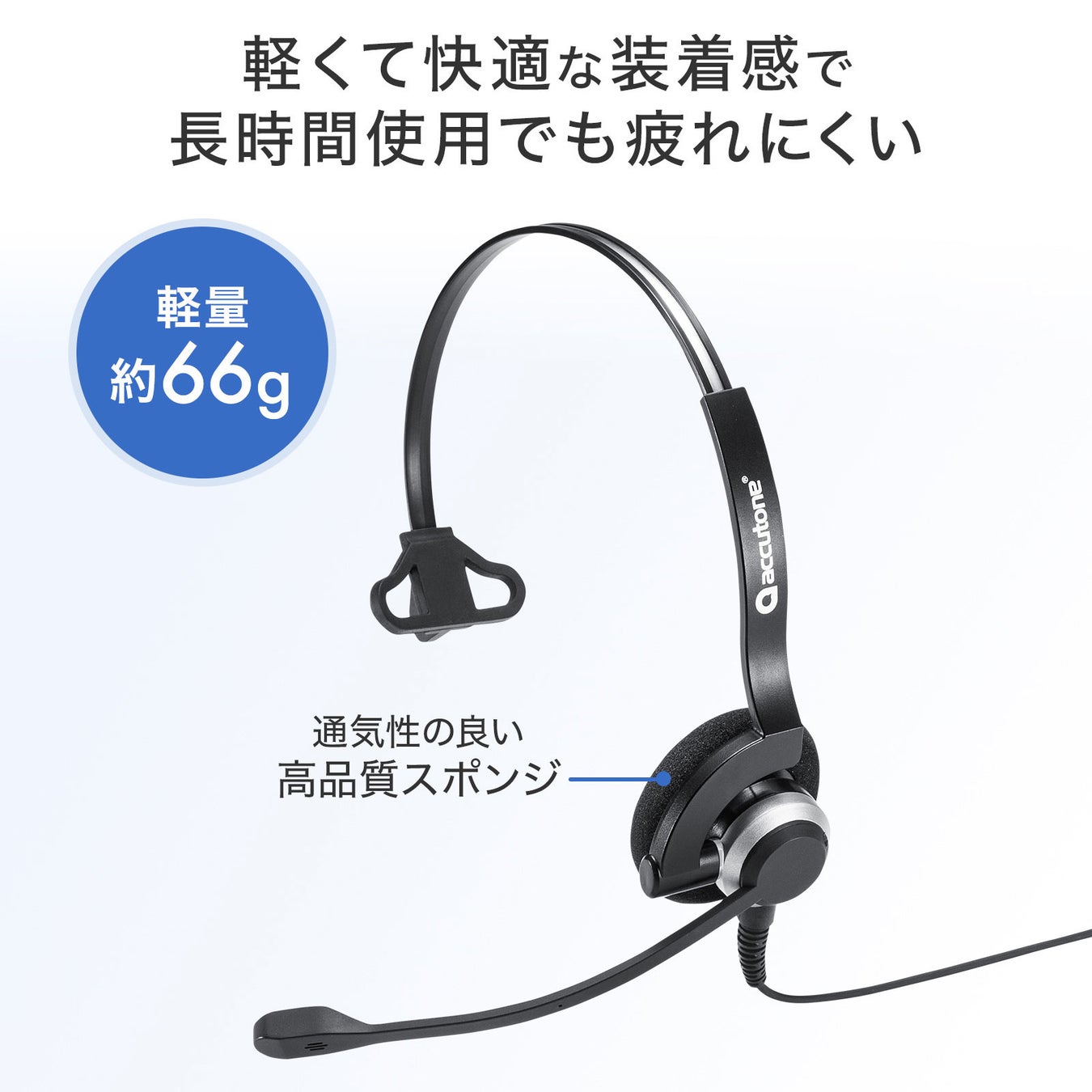 重量は約66gと軽く、イヤーパッドに通気性の良い高品質なスポンジ素材を採用しているので、長時間でも快適な装着感でお使いいただけます。受話器の代わりに使用することで両手が自由になり、通話しながらパソコン操作などをすることができるので、オペレーター業務などに最適です。