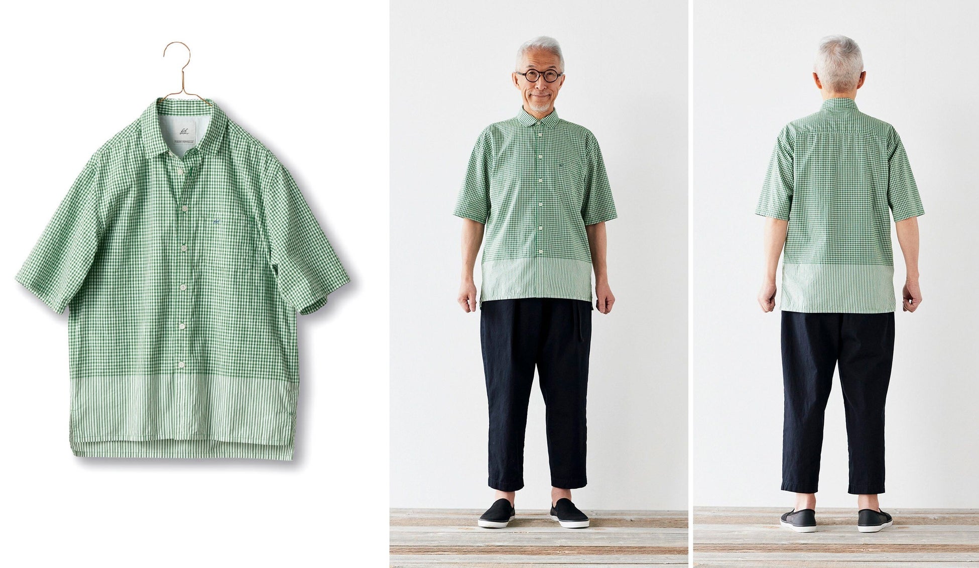 【NEW】サニークラウズ feat. bonpon bonさんのキュウリ色ギンガムシャツ〈メンズ〉
