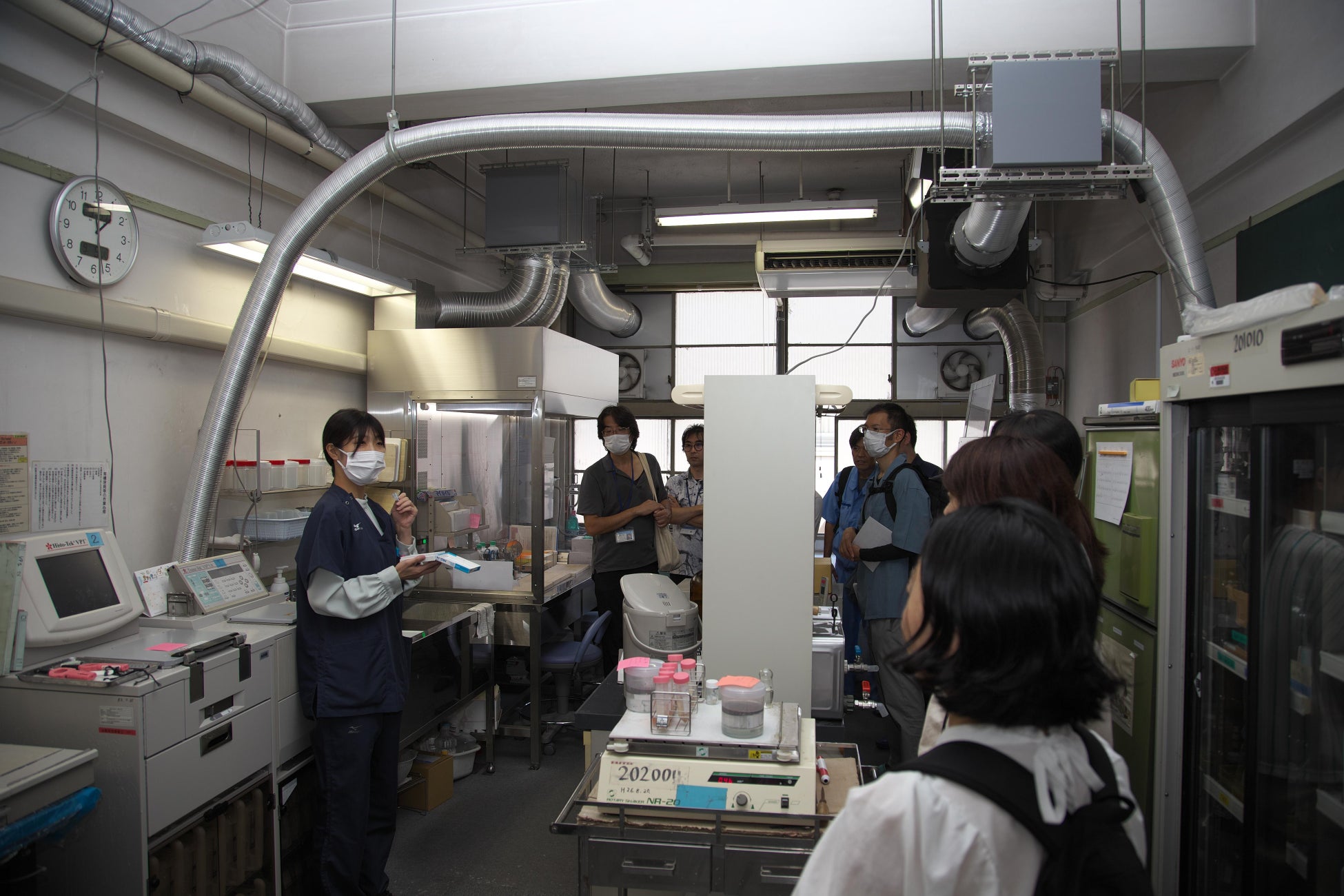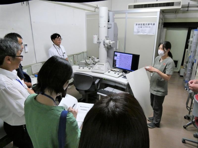 また今回の研修では新たな試みとして、希望者を対象に、本学医学部共同実験室の施設見学を実施。他部署では見る機会の少ない研究機器などを間近で見る貴重な機会となり、参加者からは今後も見学会継続を希望する声が聞かれました。