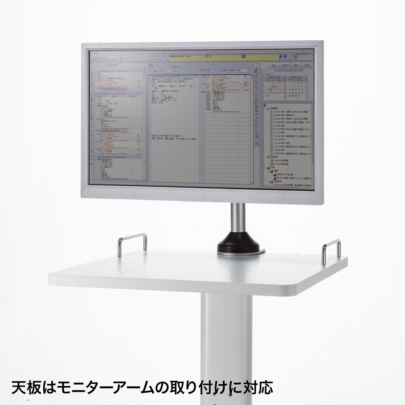 硬質な天板にはモニターアームの取り付けも可能で、天板をさらに広く使用したい場合におすすめです。