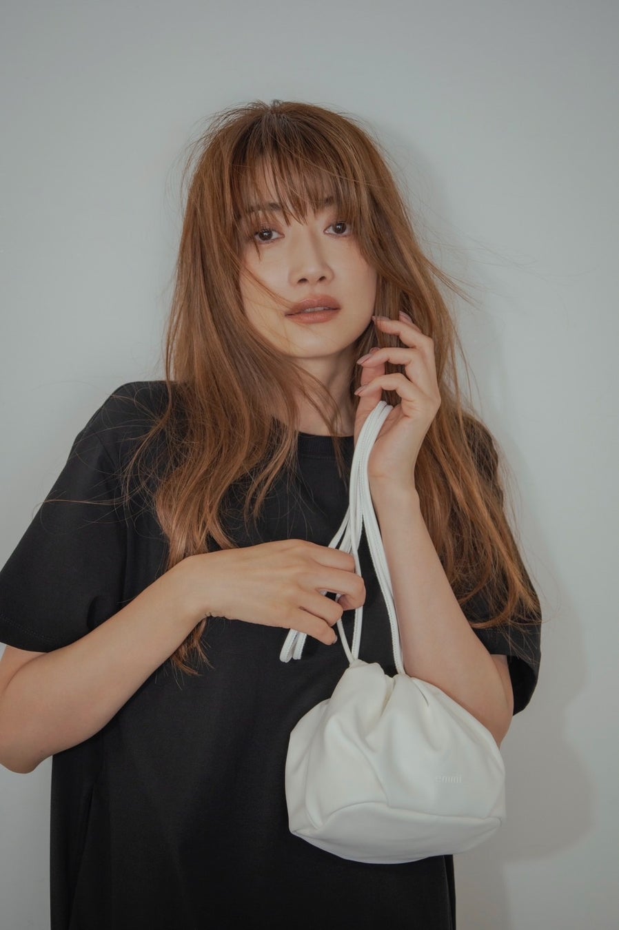 ころんとしたフォルムがかわいい巾着ショルダー。光沢があり手に吸い付くようなレザーライクな素材で高級感がありつつ、クリアモードな印象のホワイトカラーに。斜め掛けした時にちょうどよい長さで、デイリーからオケージョンまで活躍します。