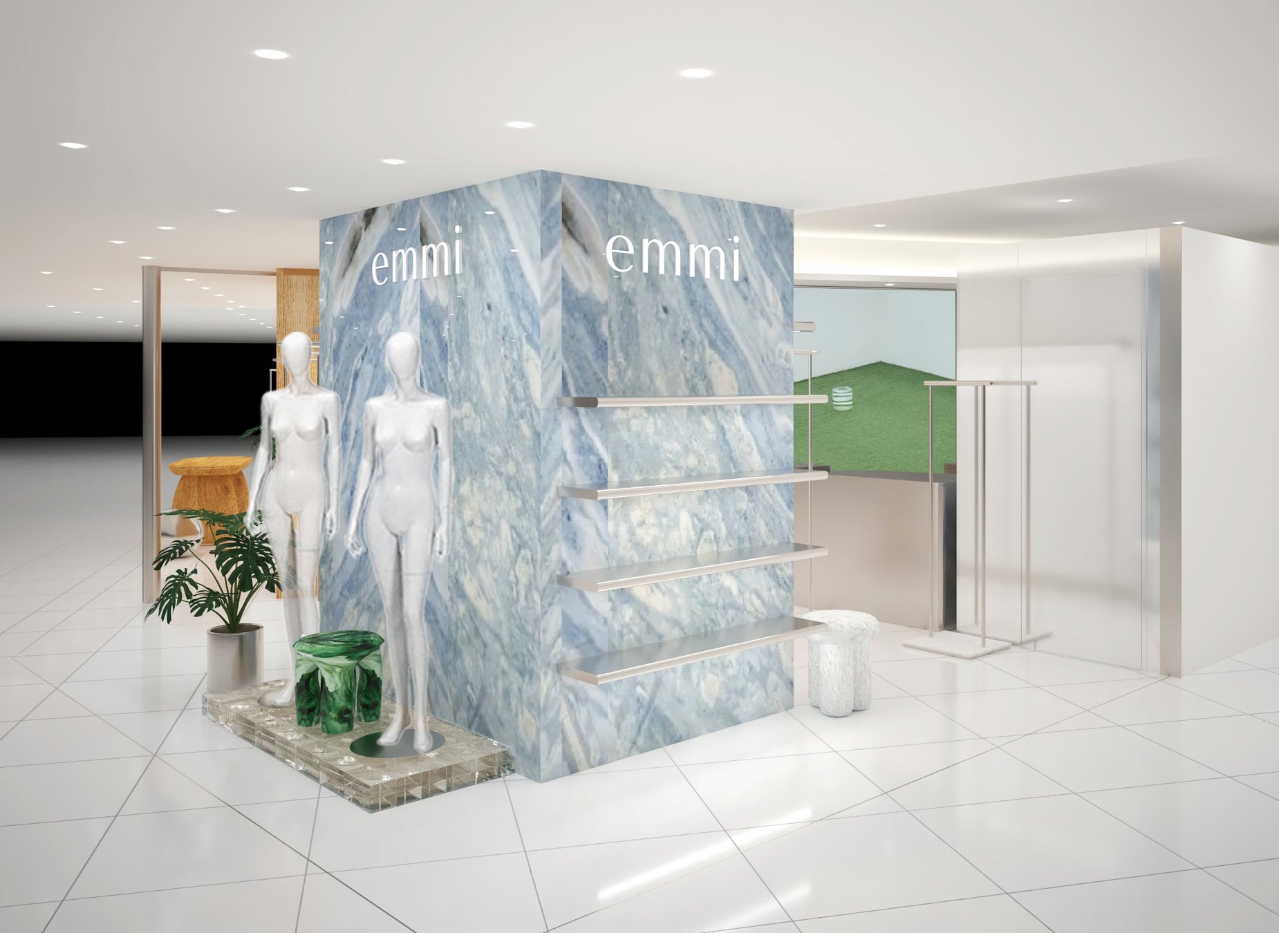 “クリアモード’'をブランドコンセプトに掲げる emmi より、環境に配慮したクリーンな素材を多用する‘‘サステナブルコンセプトストア’'が横浜高島屋に誕生。