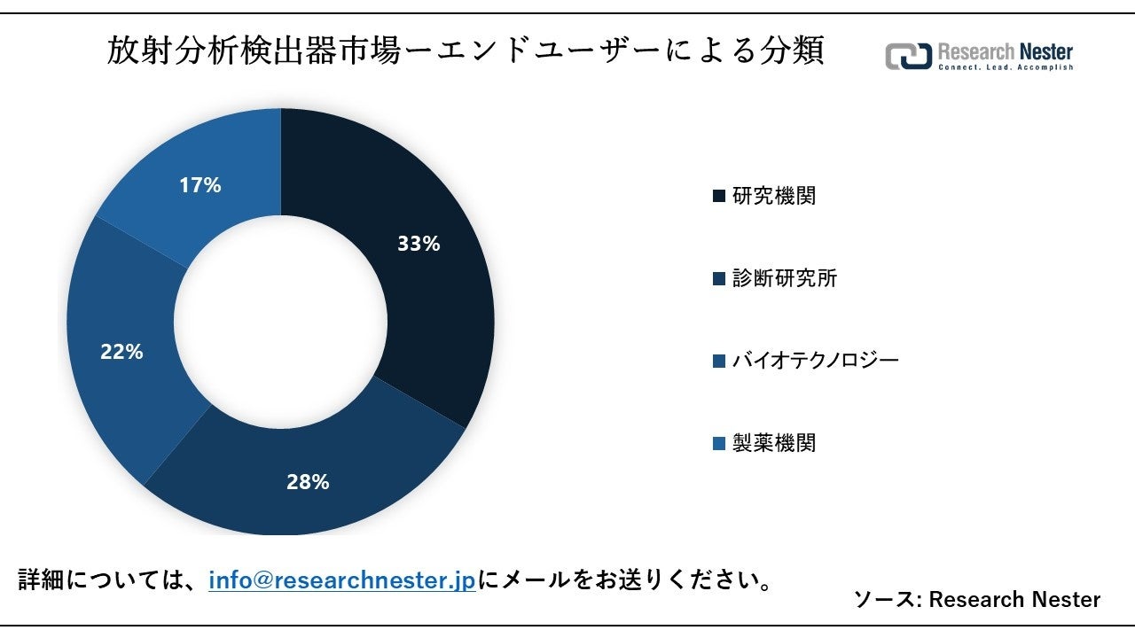 医療インフラの整備により研究所数が増加ーヘルスケア インフラストラクチャの改善による研究施設の増加は、世界市場の成長を牽引すると予想されます。さらに、ヘルスケア部門の強化における市場関係者やさまざまな地域の政府による投資の増加は、市場の成長を牽引する要因です。たとえば、Million Technologies と Canberra Industries は学術機関や研究機関と提携して、ヘルスケア用の放射分析検出器の新しい技術とアプリケーションを開発しています。