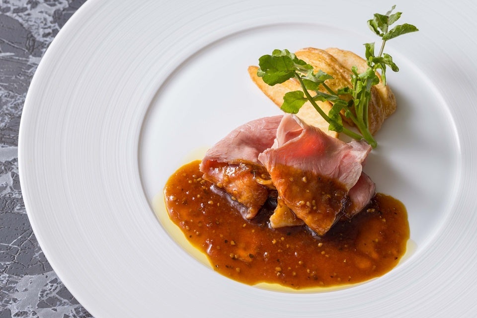 選べるメインディッシュは、柔らかジューシーなお肉はもちろん、ソースもご好評をいただいているSORAEの人気メニュー“ゆっくり焼き上げたローストビーフ”をはじめ、しっとりきめ細かで上質な肉質の“ローストポーク オリエンタルソース”、カリっと焼き上げた皮目の香ばしさがたまらない“チキンロースト 黒胡椒ソース”、シェフおすすめのお魚メニューが月替わりで登場する“今月のお魚料理”の4種をご用意。さらに、冷製オードブルのほか、カレーやスープ、デザートをお好きなだけお召し上がりいただけるブッフェも含む充実の内容です。
