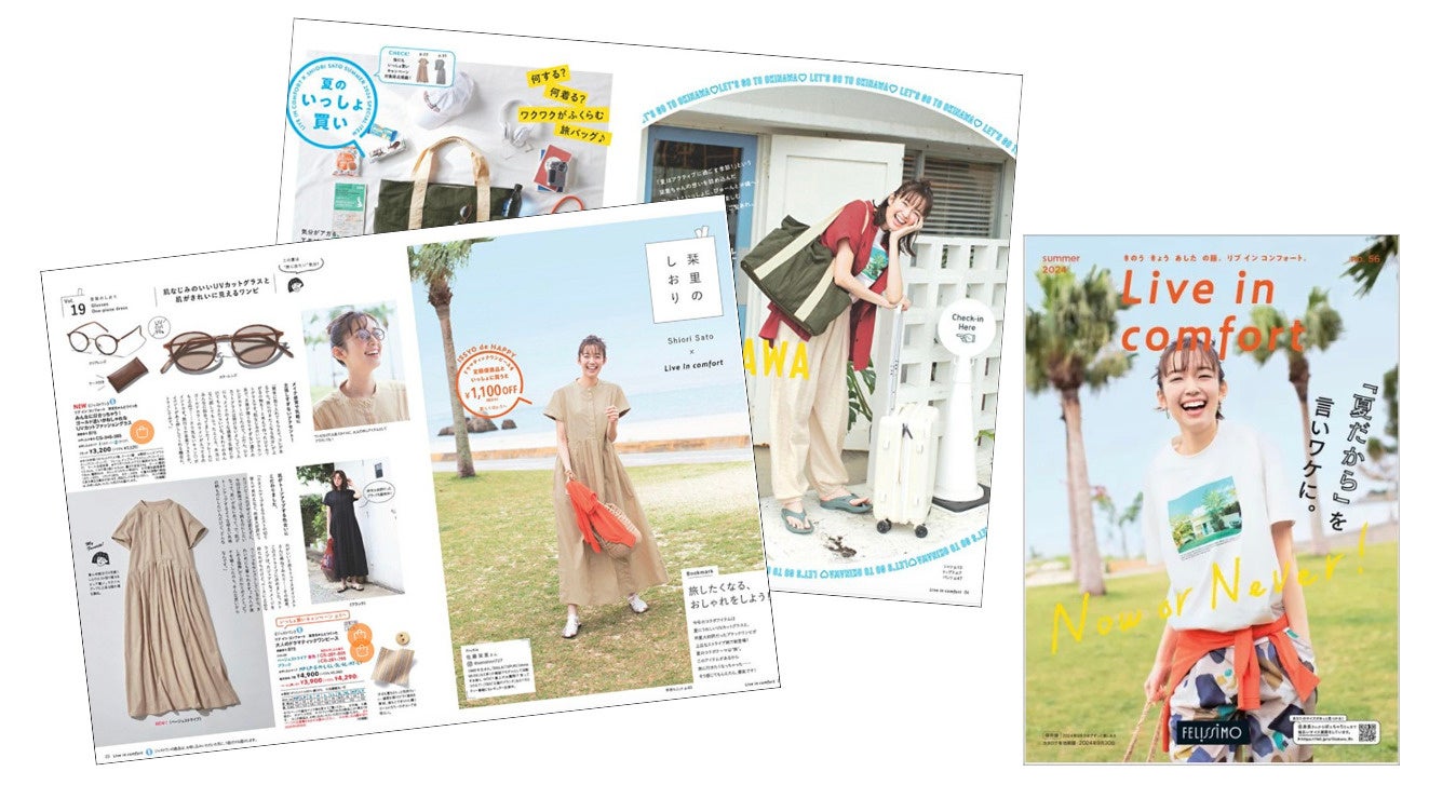 佐藤栞里さん、浜島直子さんとコラボした「大人のドラマティックワンピース」や「大人フリルサンダル」など夏の新作がフェリシモ「Live in comfort[リブ イン コンフォート]」から登場