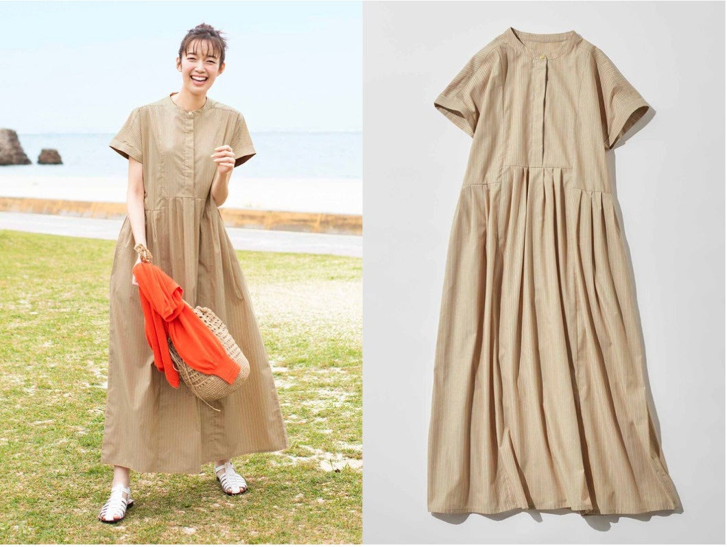 ・昨年大人気だった黒いワンピースの新作「ベージュストライプ」