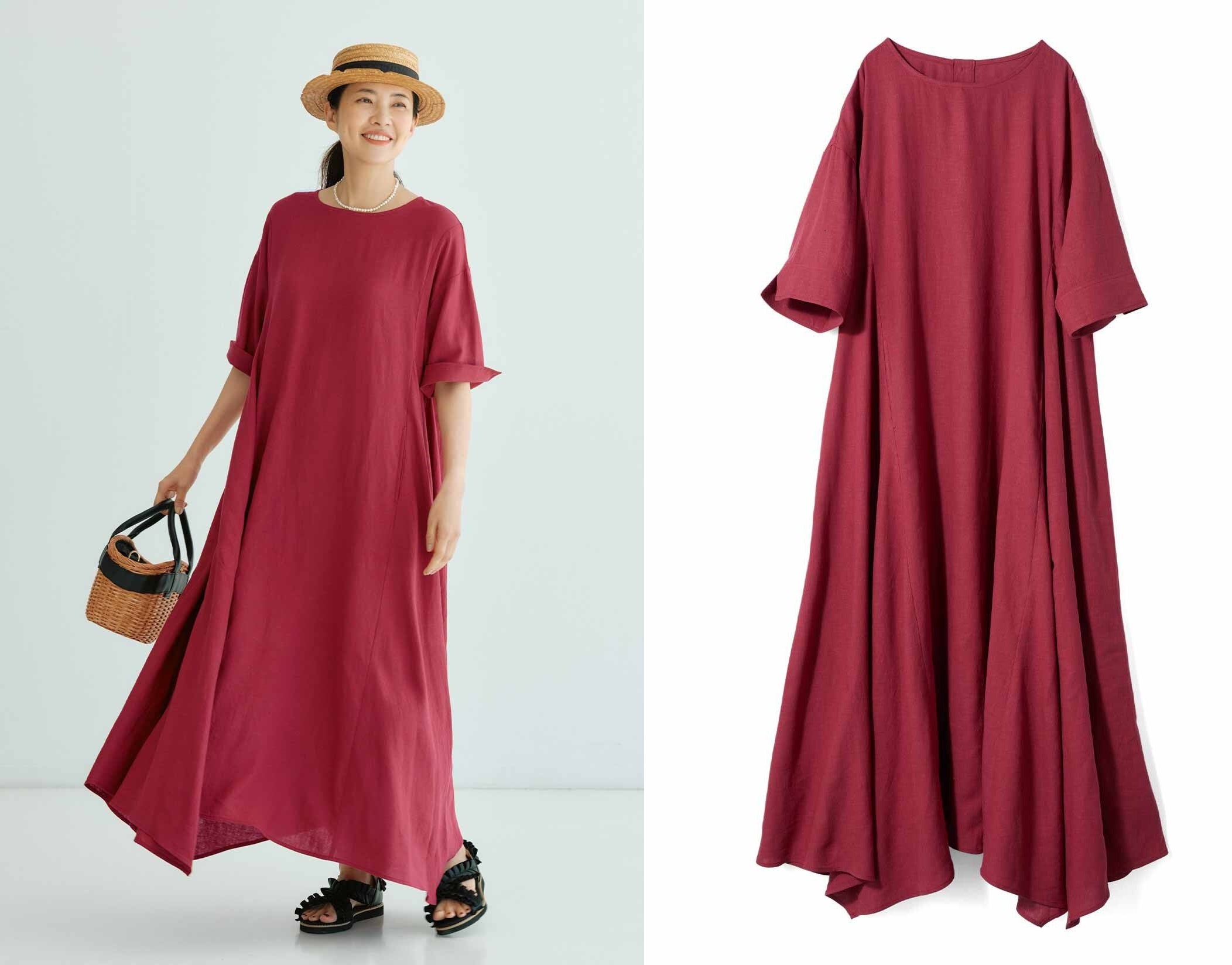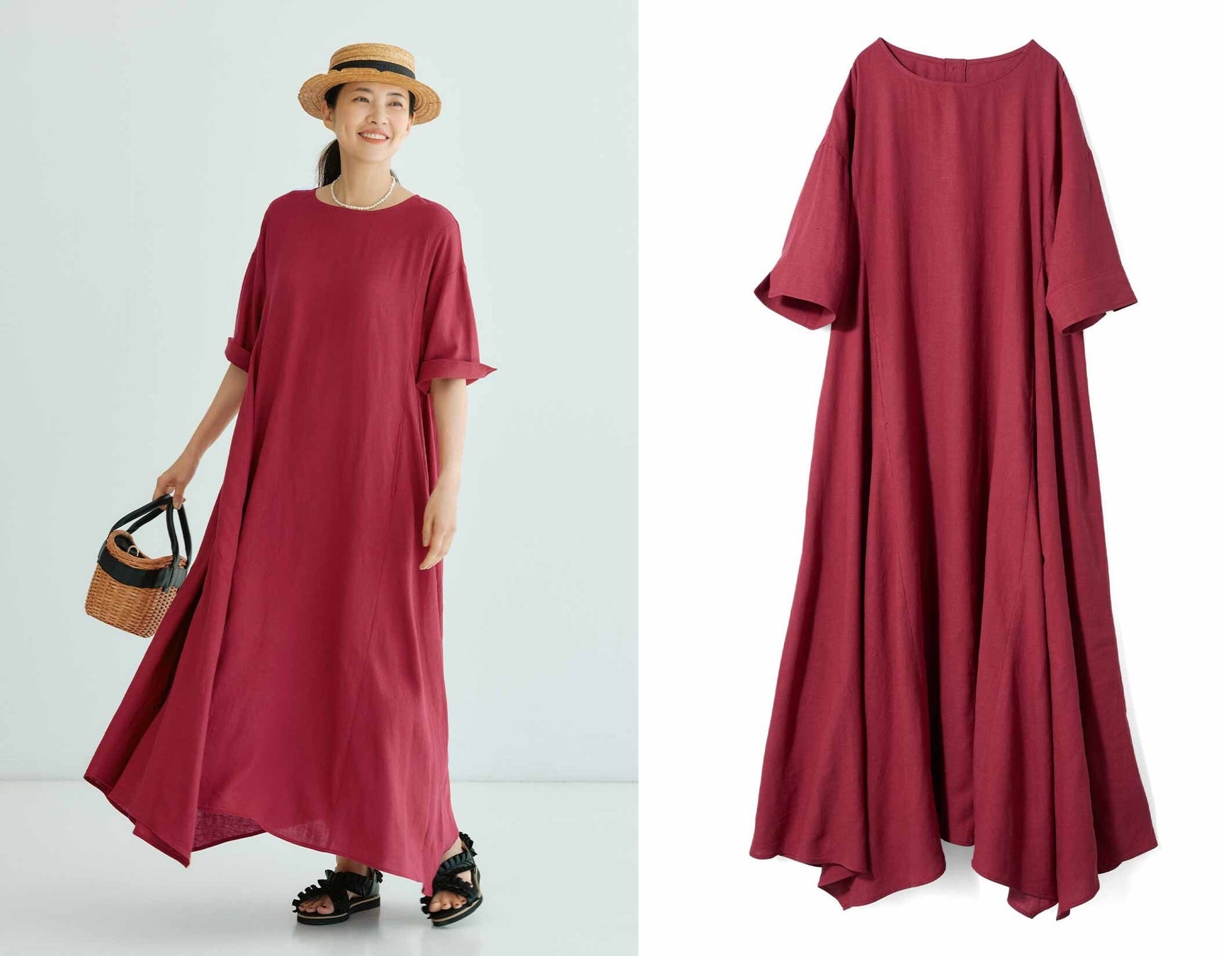【NEW】リブ イン コンフォート はまじとコラボ 揺れるヘムラインを楽しむ 麻混ワンピース