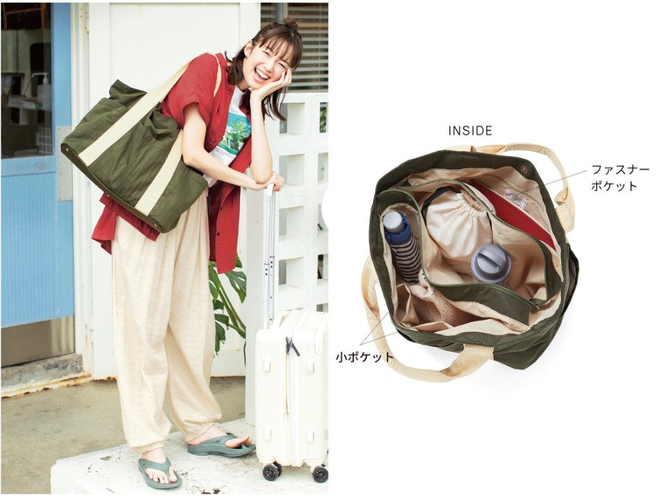 【NEW】リブ イン コンフォート 栞里ちゃんとつくった 3部屋構造で超大容量! マルチ使いできるキャリーオンバッグ〈カーキ〉